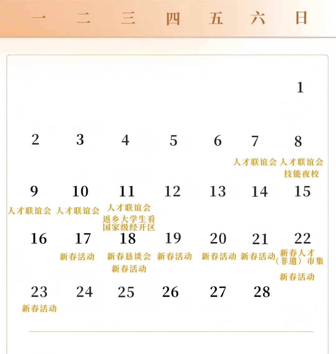 主要内容:春节期间举办盐城经济技术开发区新春人才(非遗)市集,大力引进我区产业发展急需的人才,统筹做好重点群体就业和区内企业用工服务工作。人才集市在提供优质招聘岗位的同时,特设非遗展示区,汇聚盐城特色非遗文化,以人才市集促进消费升级。