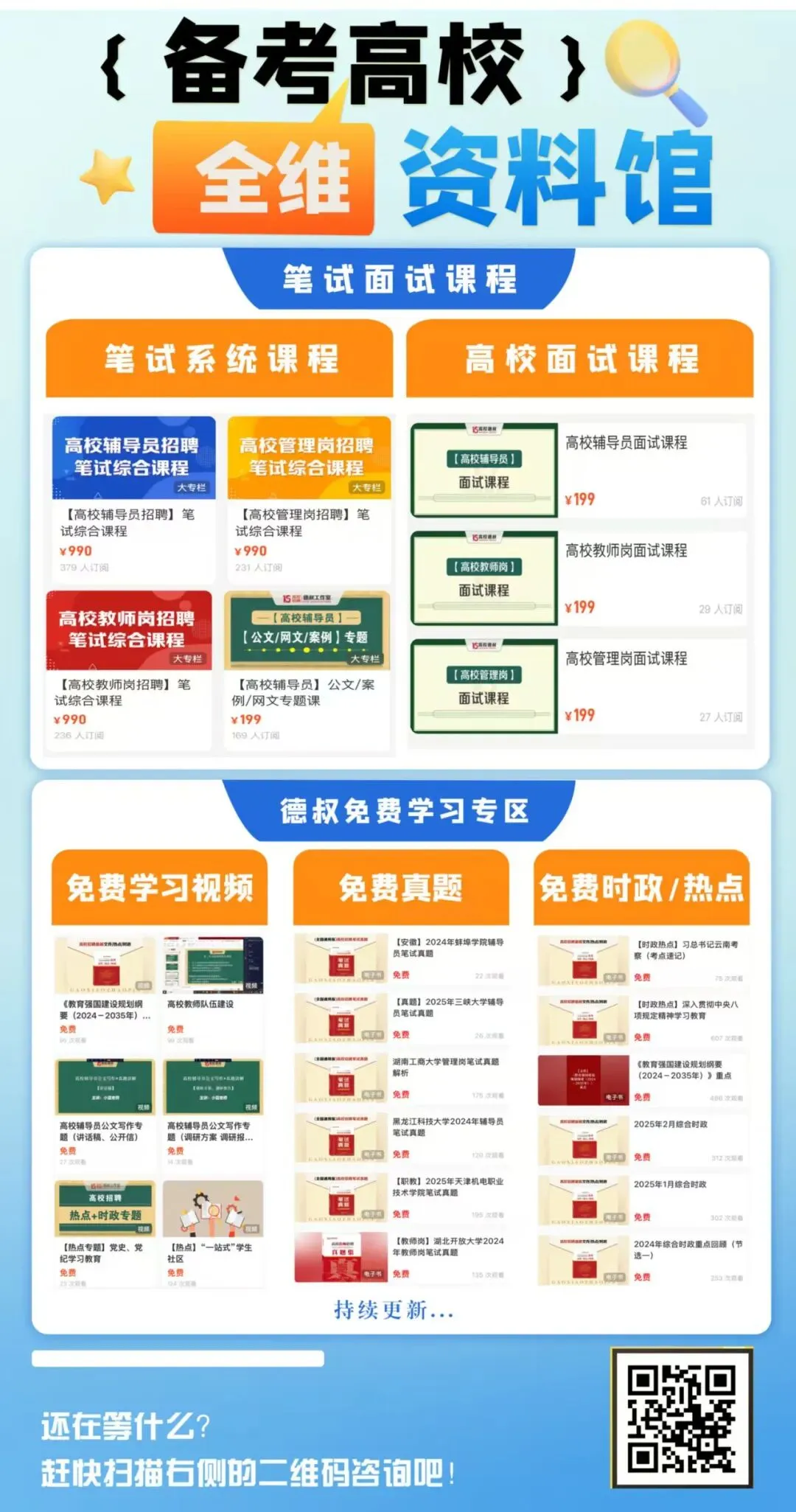 1.教师岗:专业考核方式为面试(半结构化面试、试讲、答辩),考核成绩实行百分制,合格分数线为75分。考核成绩合格者推荐至学校参加综合评议。