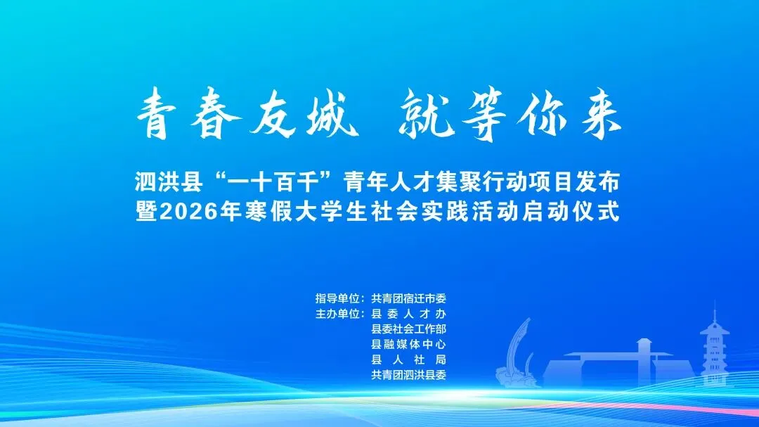 1月28日下午,“青春友城 就等你来”泗洪县青年人才集聚行动项目发布暨2026年寒假大学生社会实践活动正式启动。活动吸引了寒假社会实践学子、乡村振兴计划志愿者及众多“青春友城”建设伙伴参与,共同展望青年与城市共同发展的未来。