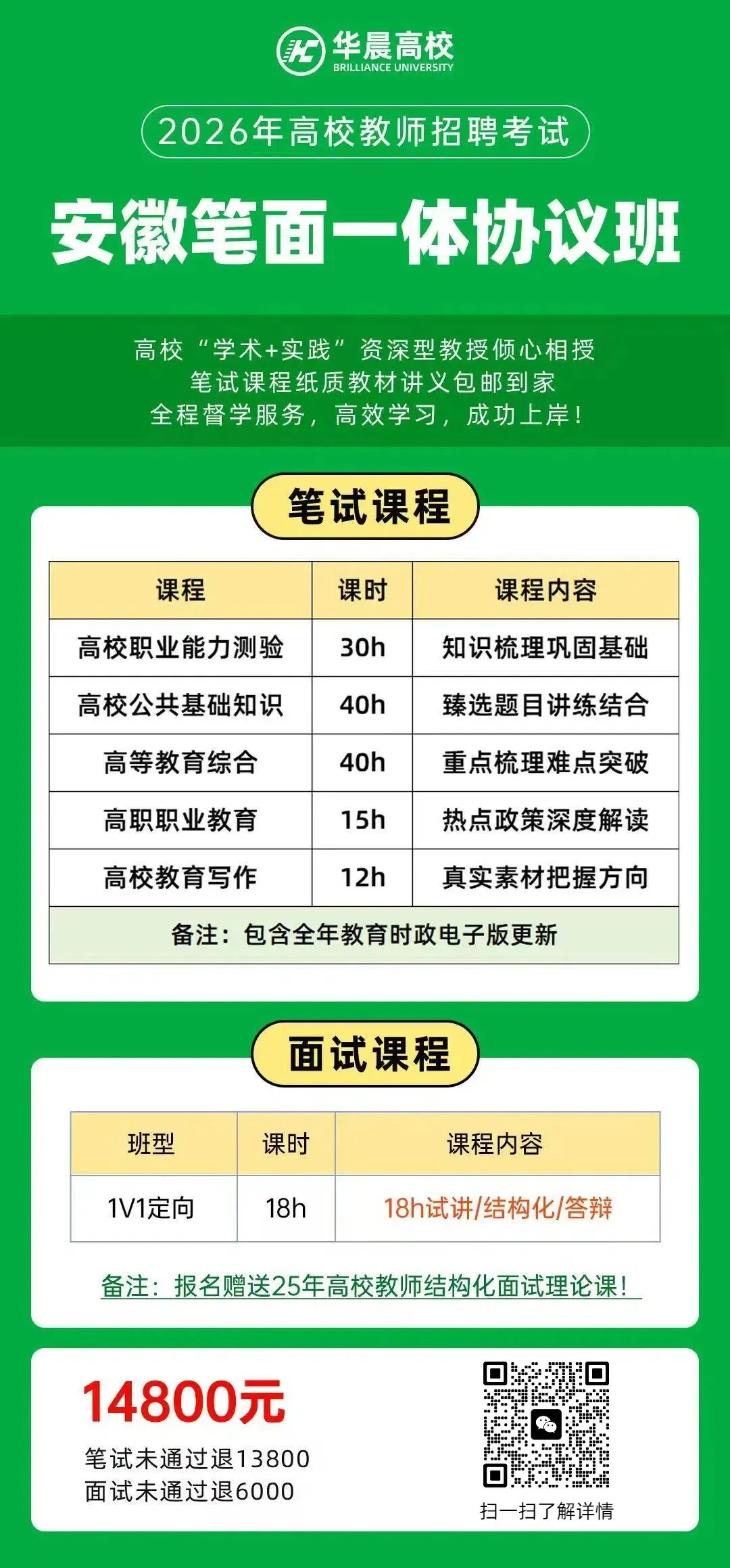 ✅笔试全面:专业知识巩固基础、高校公共基础知识讲练结合、高等教育综合突破难点、案例分析+写作聚焦真题与素材、高职教育解读热点政策、职业能力测验夯实功底,还附赠全年时政实时更新;