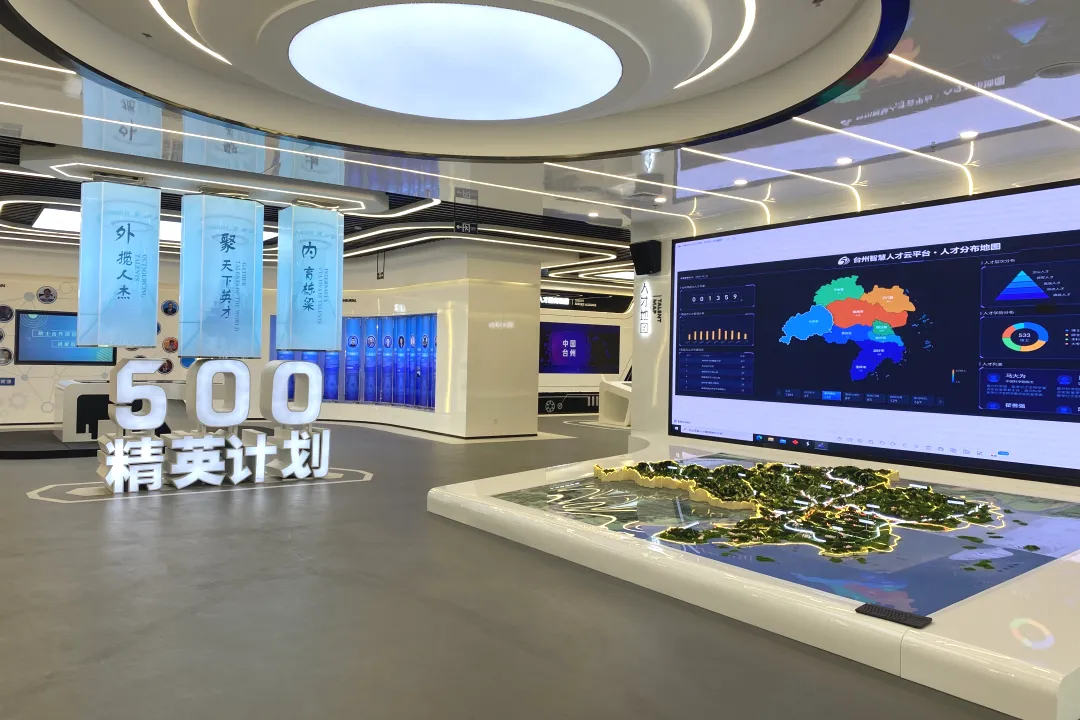 智慧展示服务大厅:大厅包含台州市人才工作宣传展示、人才服务事项办理、自助服务、休憩区等,将市委人才工作小组各成员单位的职能全部整合进驻,500㎡的人才综合服务中心采取“一窗受理、集中办理、专员服务、全程跟踪”的综合服务机制,大幅提升人才办事效率,减少跨部门跑动成本。