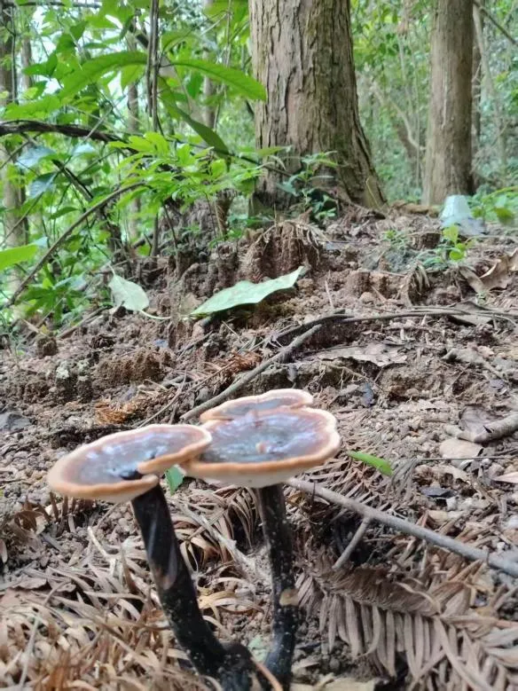 蓝钟镇古城村的林下灵芝基地迎来首次丰收。
