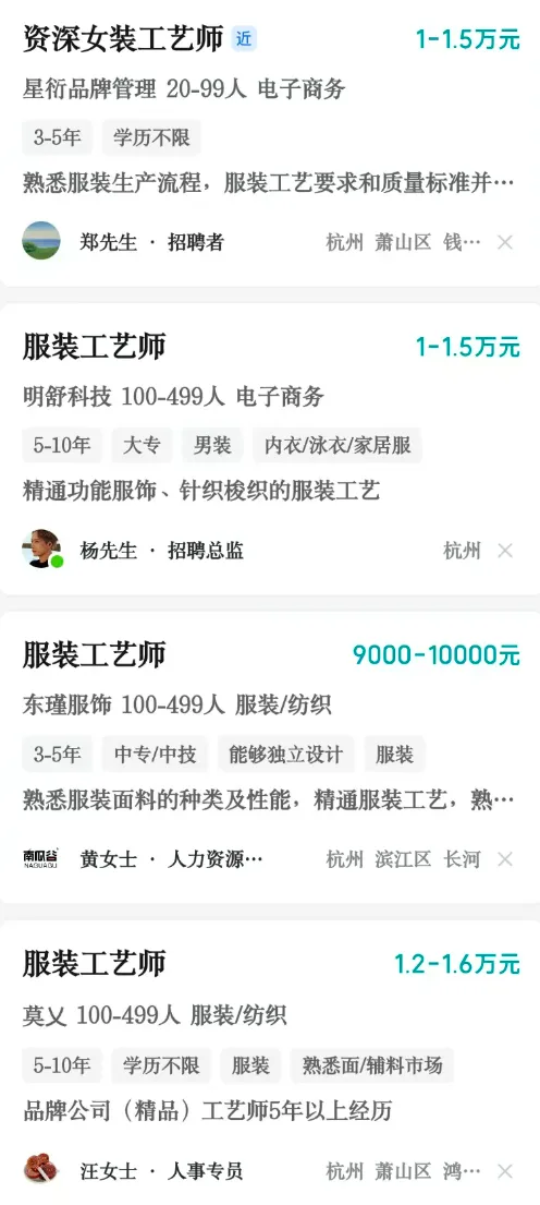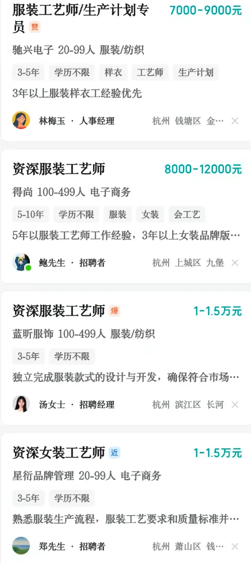 年终跳槽季,杭州服装服装工艺师高薪岗位大波来袭,你能否胜任!