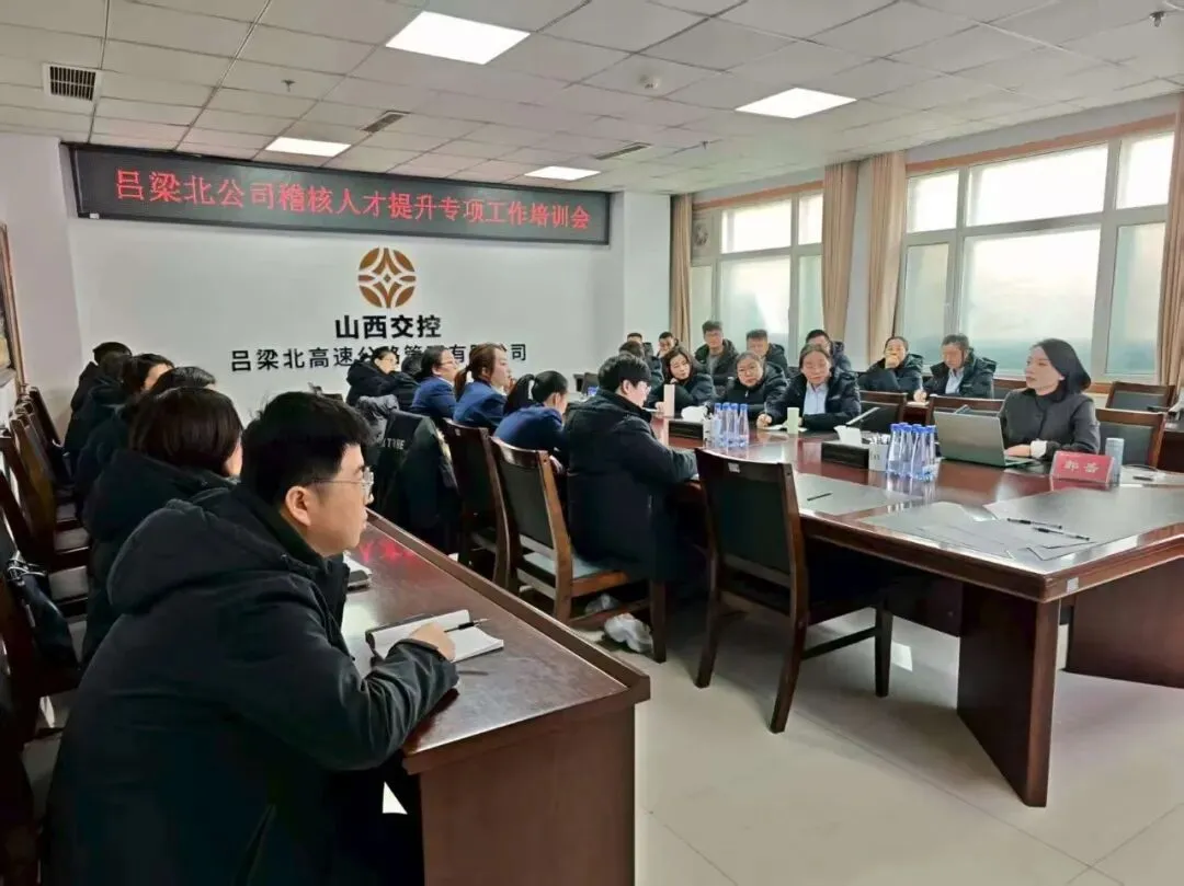 为全面推进稽核人才提升工作,夯实稽核队伍业务能力,1月29日,吕梁北公司组织召开2026年稽核人才提升专项工作首次培训会。为兼顾各收费站、稽核工作室稽核员的在岗值守需求,同时确保全员参训,本次培训采取“线上 + 线下”相结合的形式开展,线上线下共46人参训,实现公司稽核人员全覆盖。
