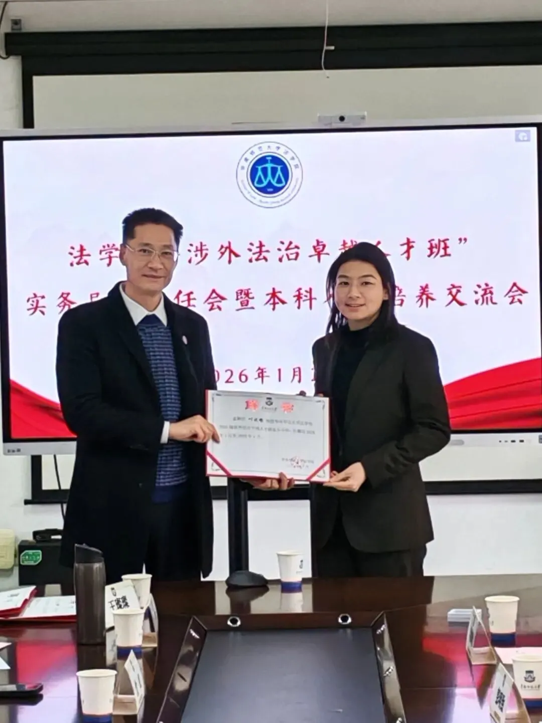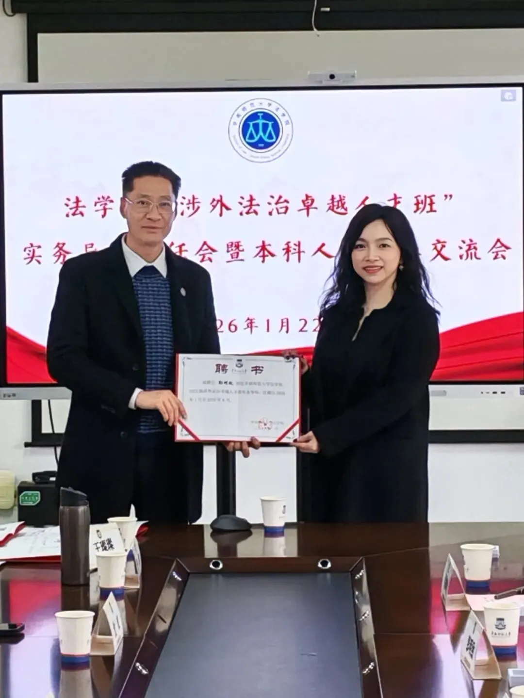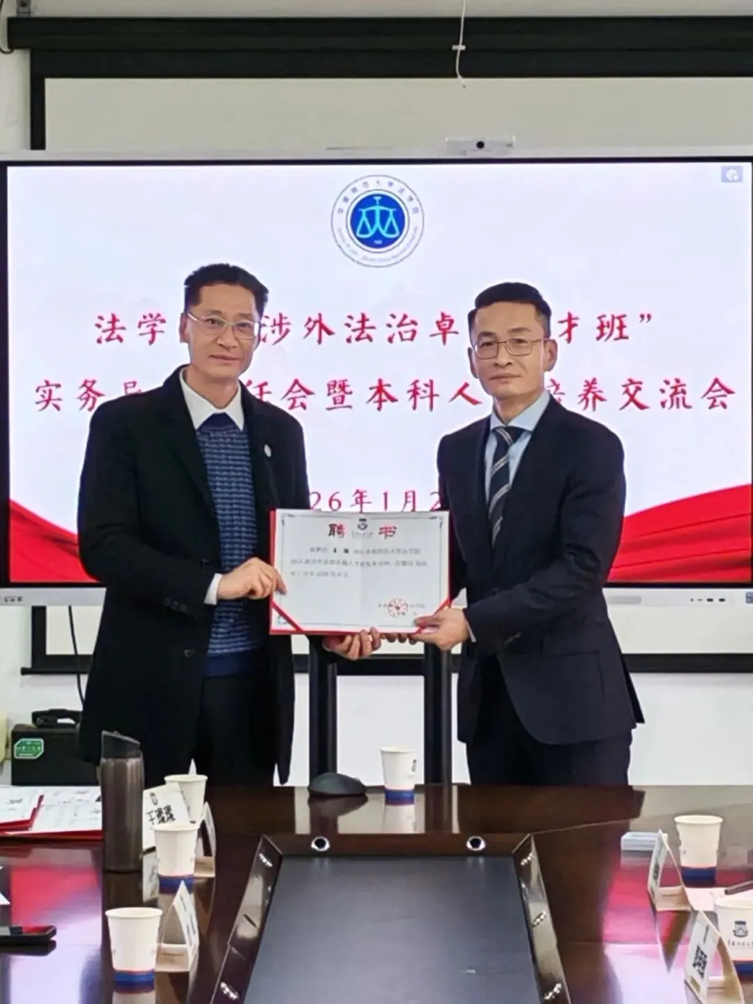 各位实务导师带来的鲜活经验,将为同学们打开一扇扇通往法治前沿的窗口。期待同学们在未来的学习中,既能扎根本土法治文化,又能拓宽国际视野,在每一次专业实践中积累经验、锤炼本领,与导师携手,共同成长为兼具理论素养与实务能力的涉外法治人才。
