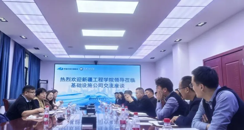 随后,林琳书记一行又赴新疆基础设施建设有限责任公司进行产教融合交流座谈。双方围绕基础设施建设领域的人才需求、实习实训课程设置、校企党建联动等内容深入交流。企业指出,当前在公路、市政、轨道交通等领域急需兼具理论与实践能力的土木工程应用型人才,希望学院强化学生工程实操技能培养。学院提出可共同开发实训项目、共建“双师型”教师培养基地,并探索“党建+业务”联动机制,推动组织共建与人才共享。