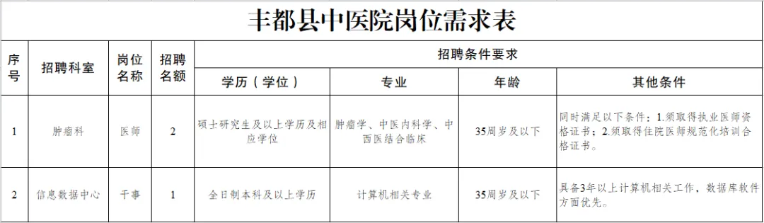 邮箱投递:请将个人简历及相关资格证件电子版,发送至丰都县中医院组织人事部邮箱2181001788@qq.com。