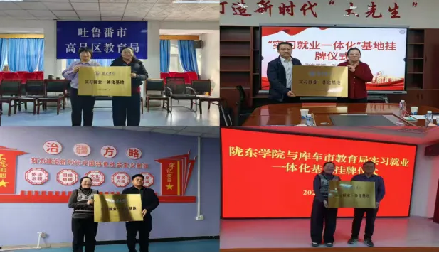 为全面落实学校就业工作“双百”行动,根据就业工作指导处安排部署,1月18日至28日,马克思主义学院、文学与历史文化学院、教育学院联合开展实习就业一体化基地挂牌活动。先后与新疆鲲鹏教育集团、吐鲁番高昌区教育局、阿勒泰教育局等8家单位举行挂牌仪式。这标志着陇东学院与新疆教育系统及相关机构的合作进入常态化、机制化新阶段,为师范生实习实践、就业创业搭建起稳固平台,也为校地协同育人、服务边疆教育发展奠定坚实基础。