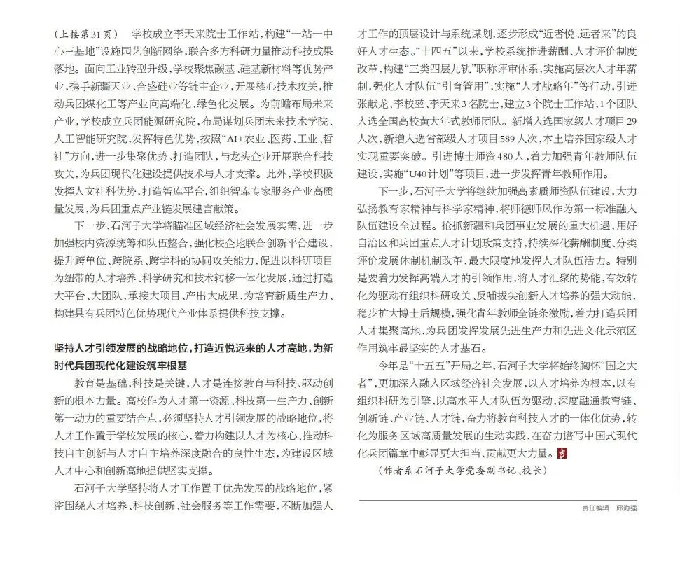 (作者系石河子大学党委副书记、校长李兆敏)