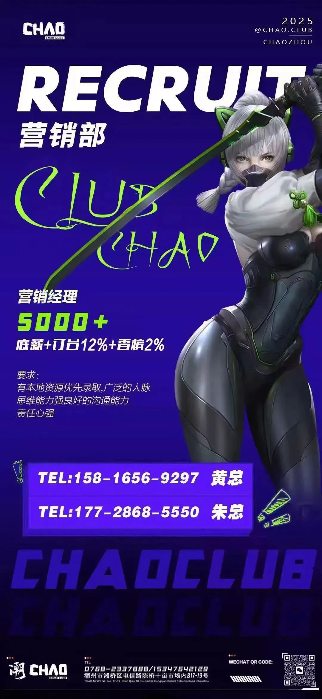 汕头濠江地区2月15顶班dmc来一个,一天330顶十天,要求做过花场会点捧客就行,有想法加:19076232364