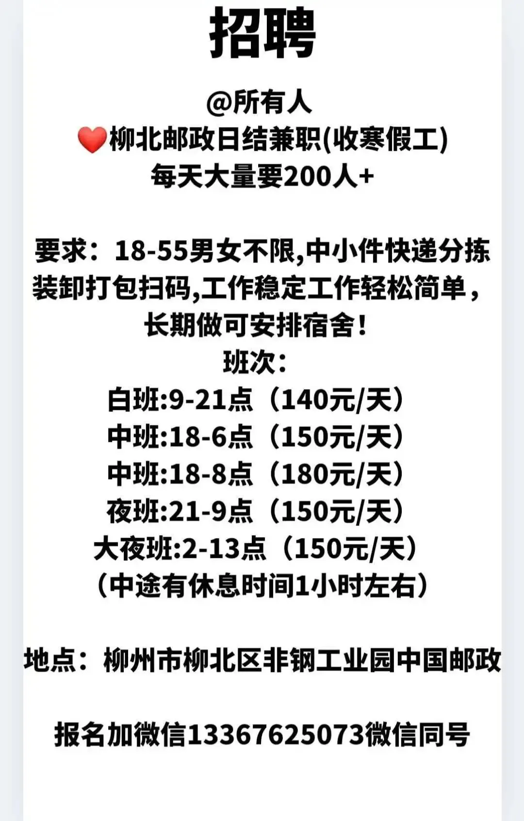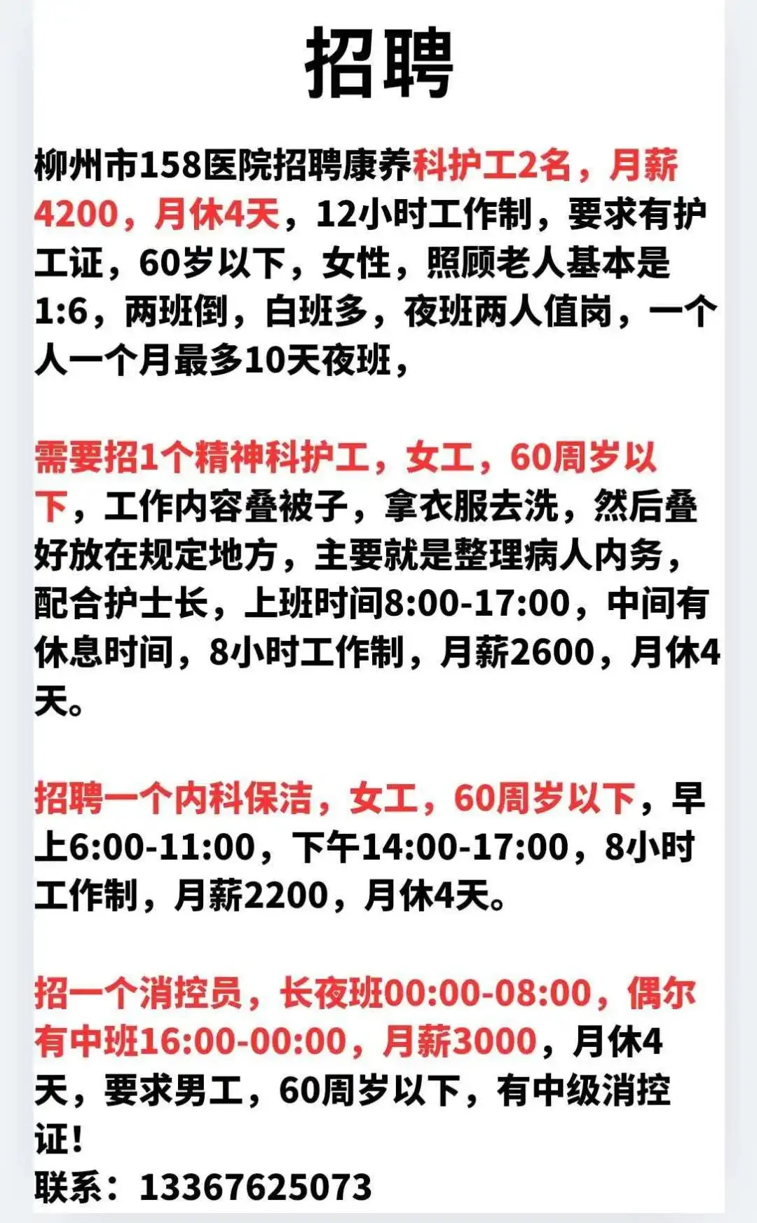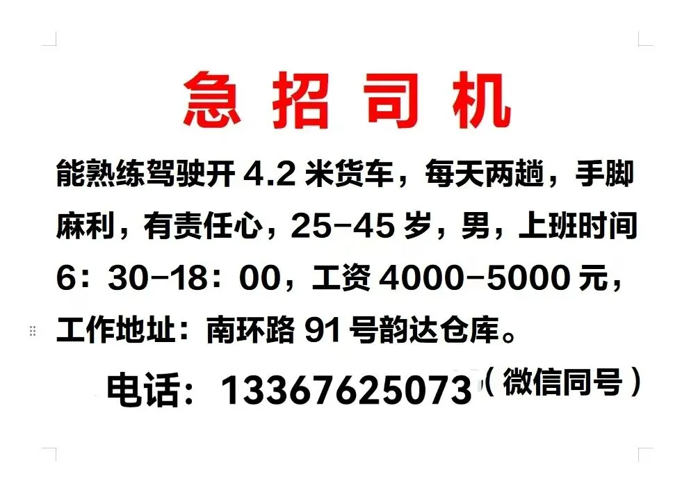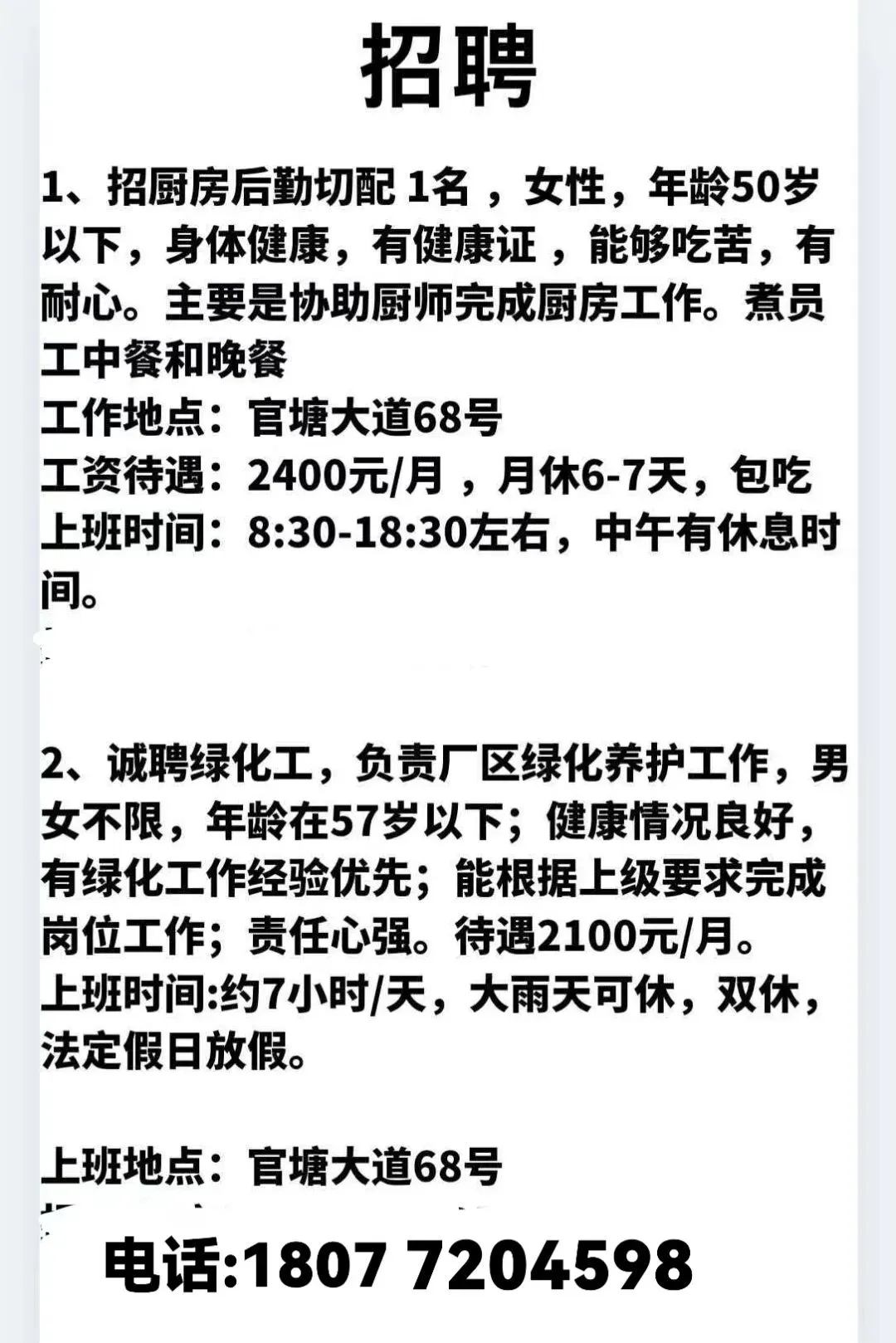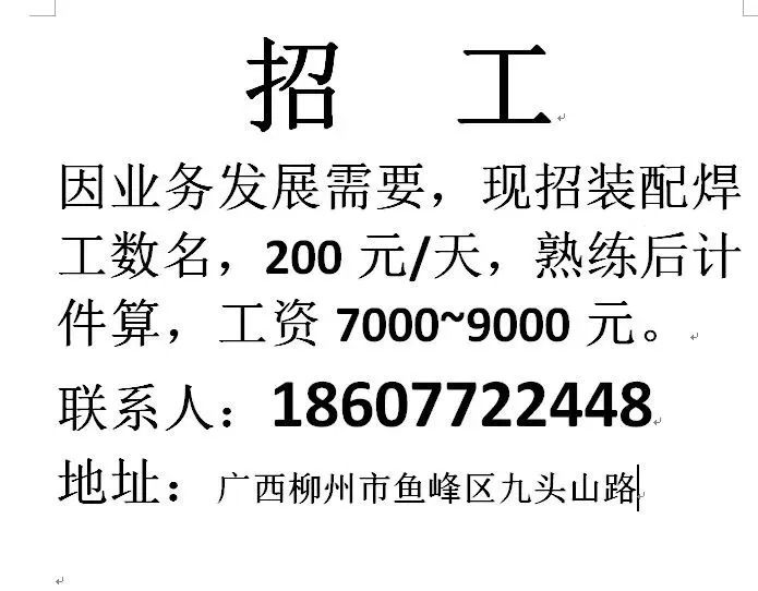 如需要发布招聘信息请加招工魏姐的微信:18077204598(微信同号)