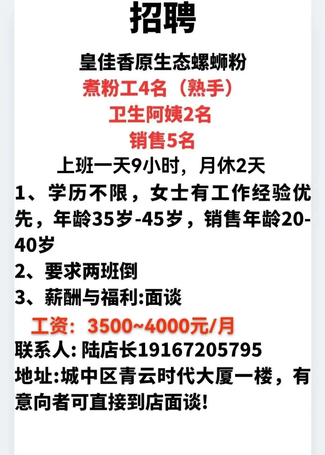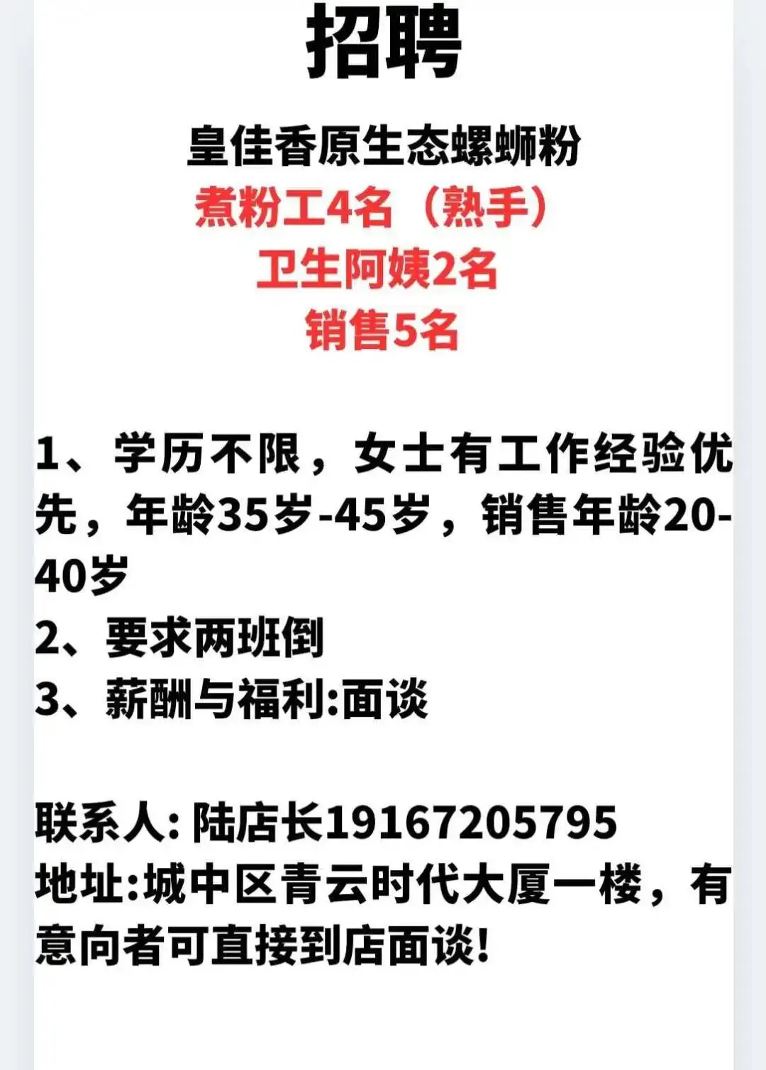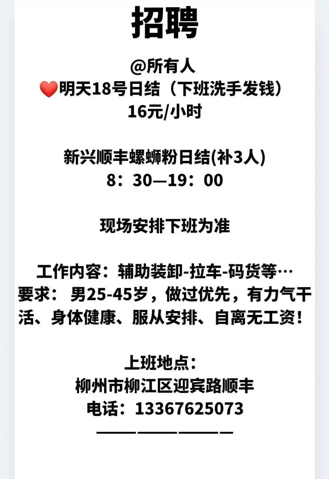 如需要发布招聘信息请加招工魏姐的微信:18077204598(微信同号)