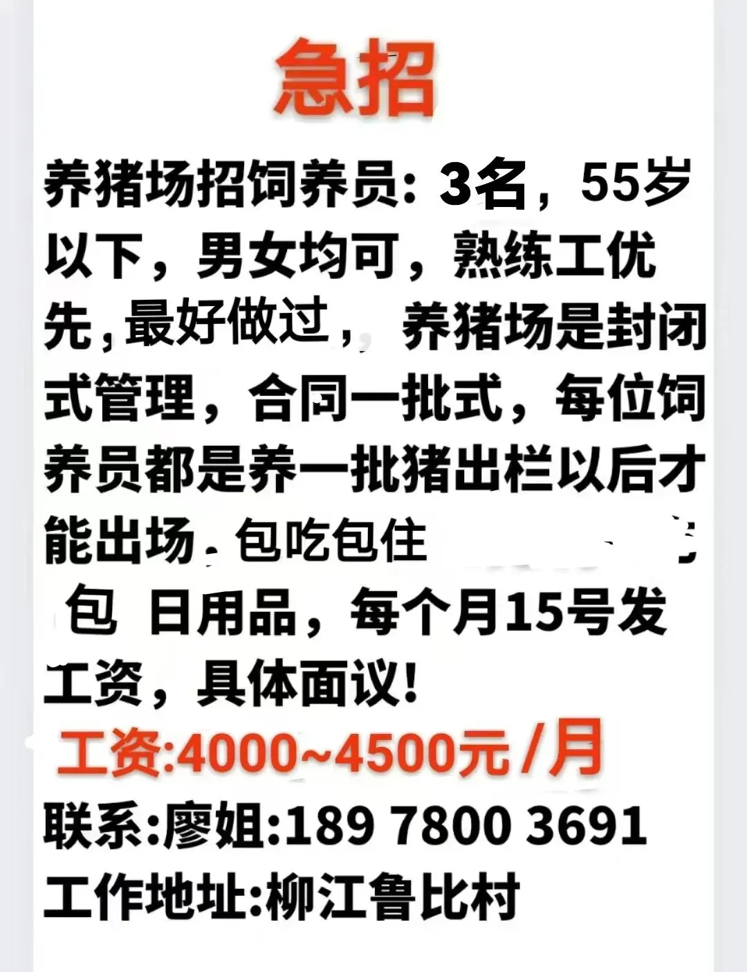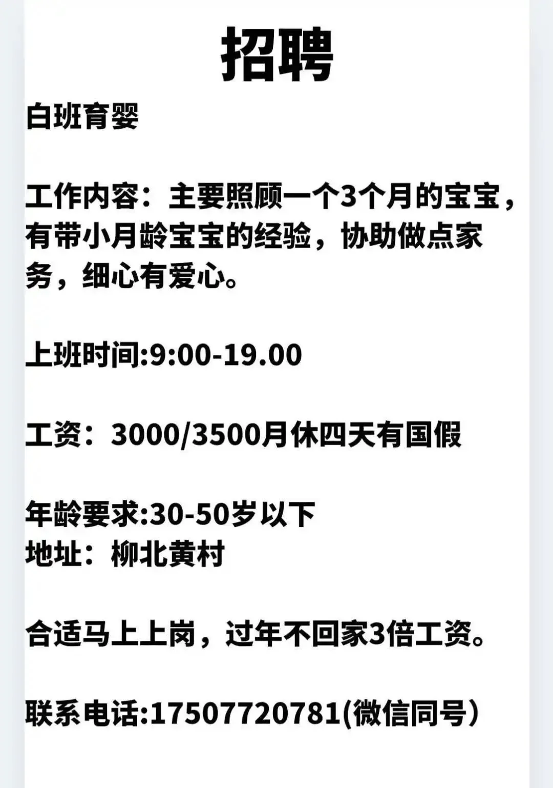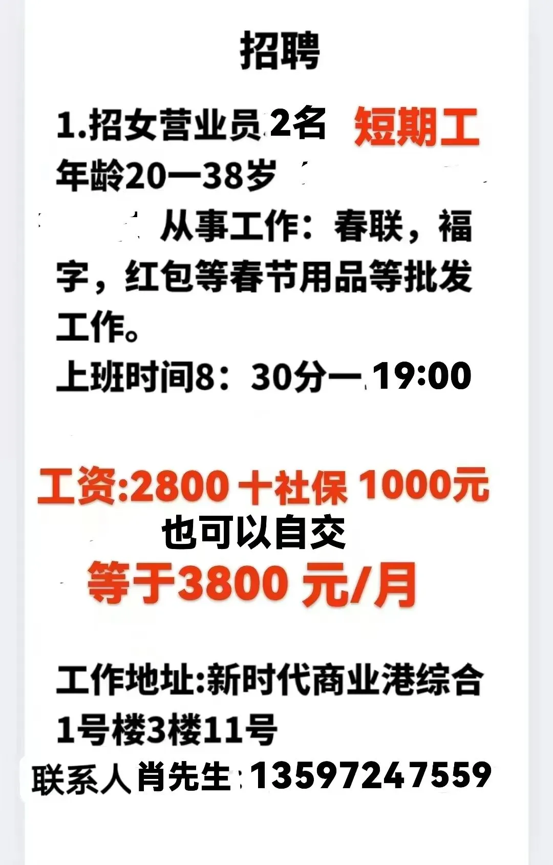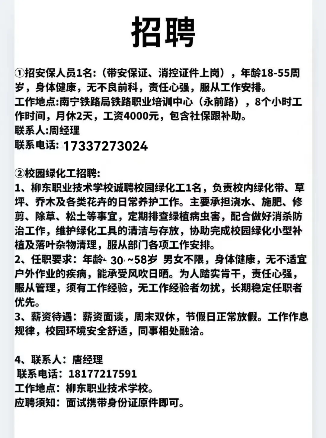 如需要发布招聘信息请加招工魏姐的微信:18077204598(微信同号)