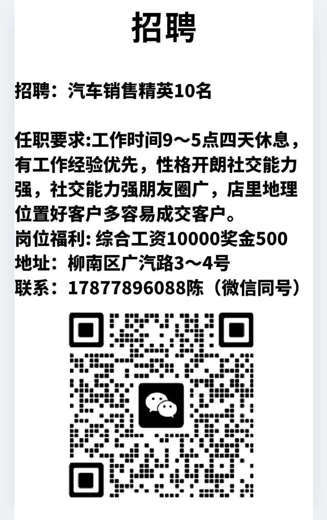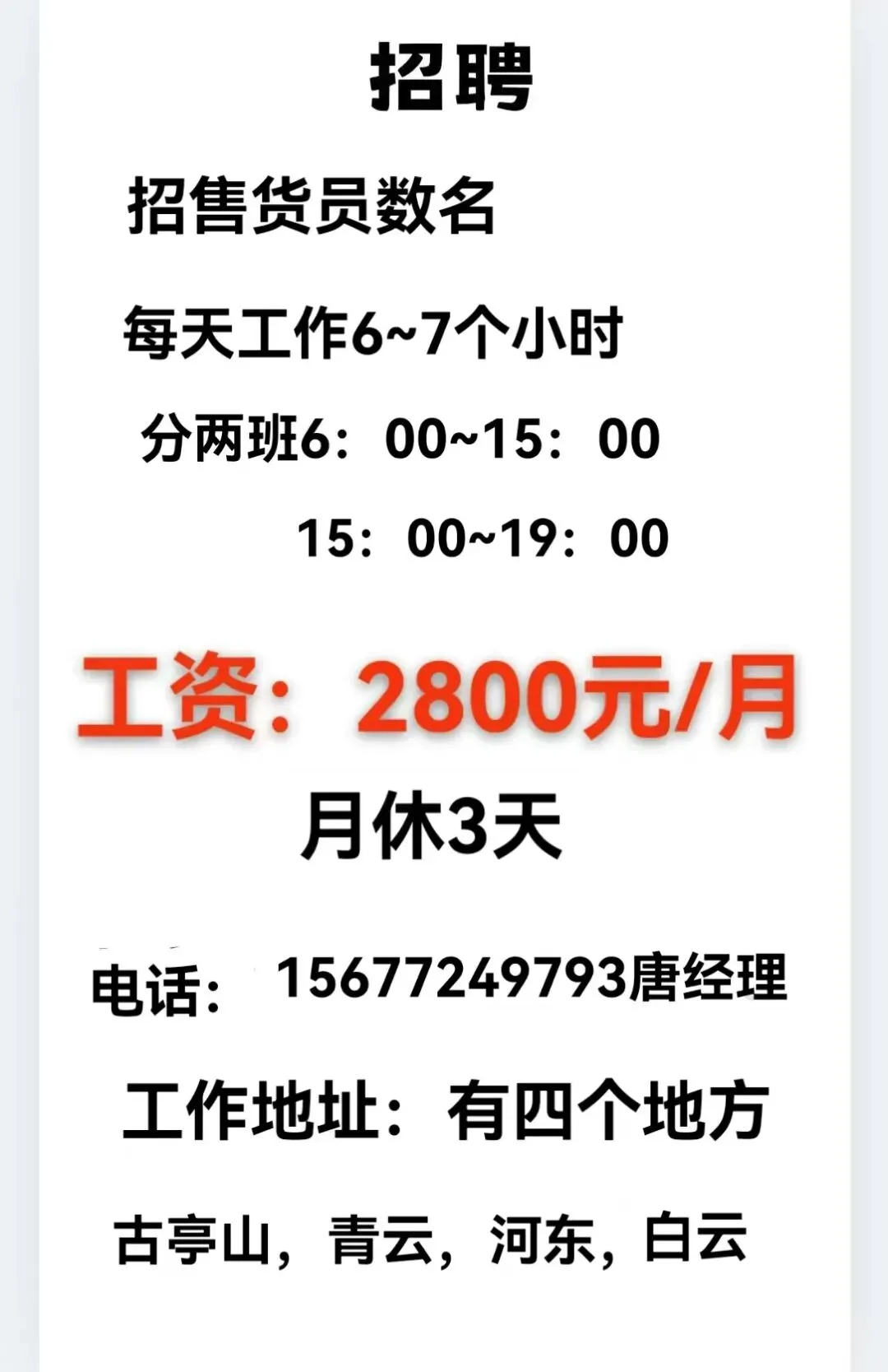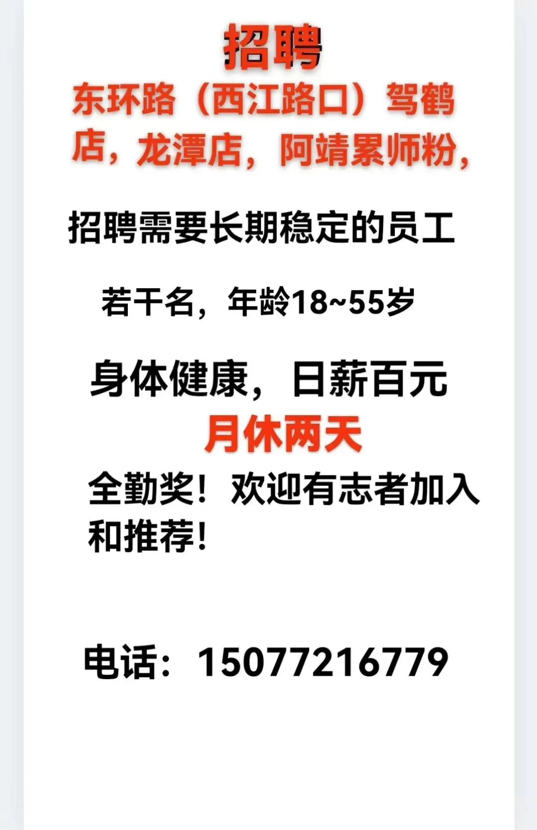 多门店需要:对外招聘优秀人才,万能朋友圈