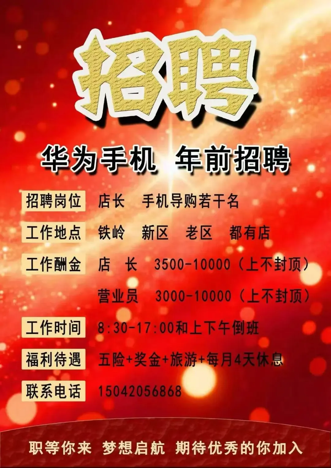 工作地点:日鑫大厦A座(新区铁岭银行附近,长白山路93号写字间,铁岭银行东侧)
