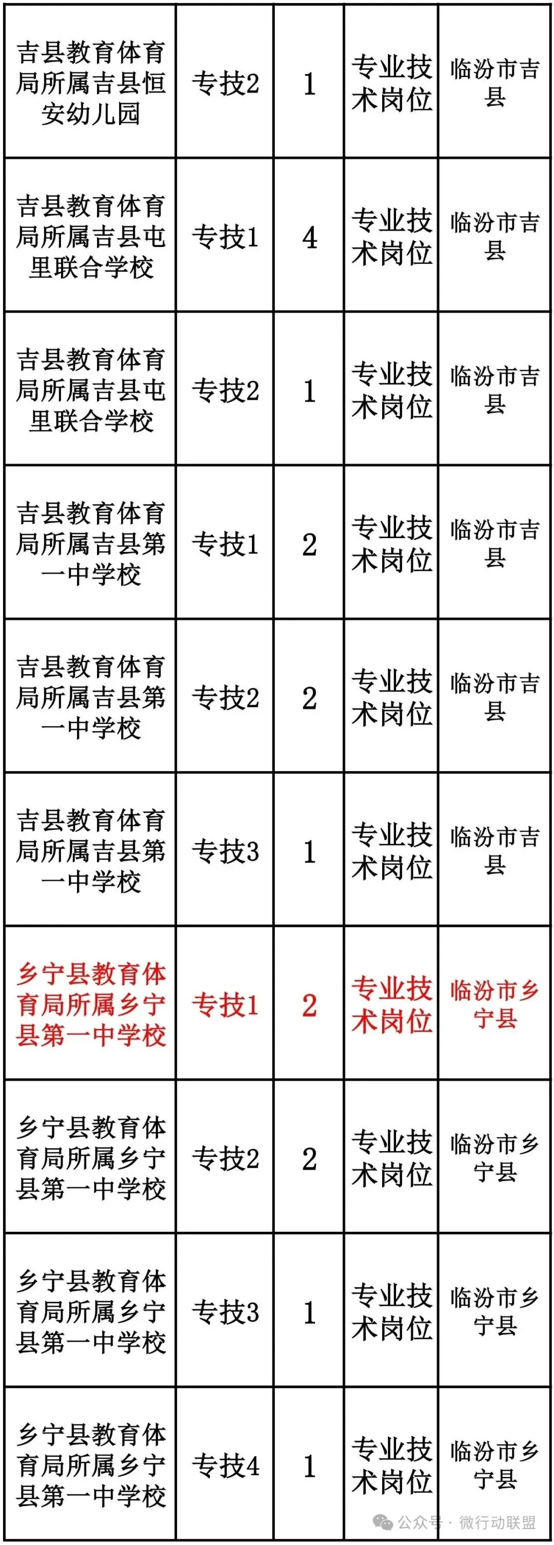 了解,其中临汾市教育系统共招聘461人,具体岗位如下: