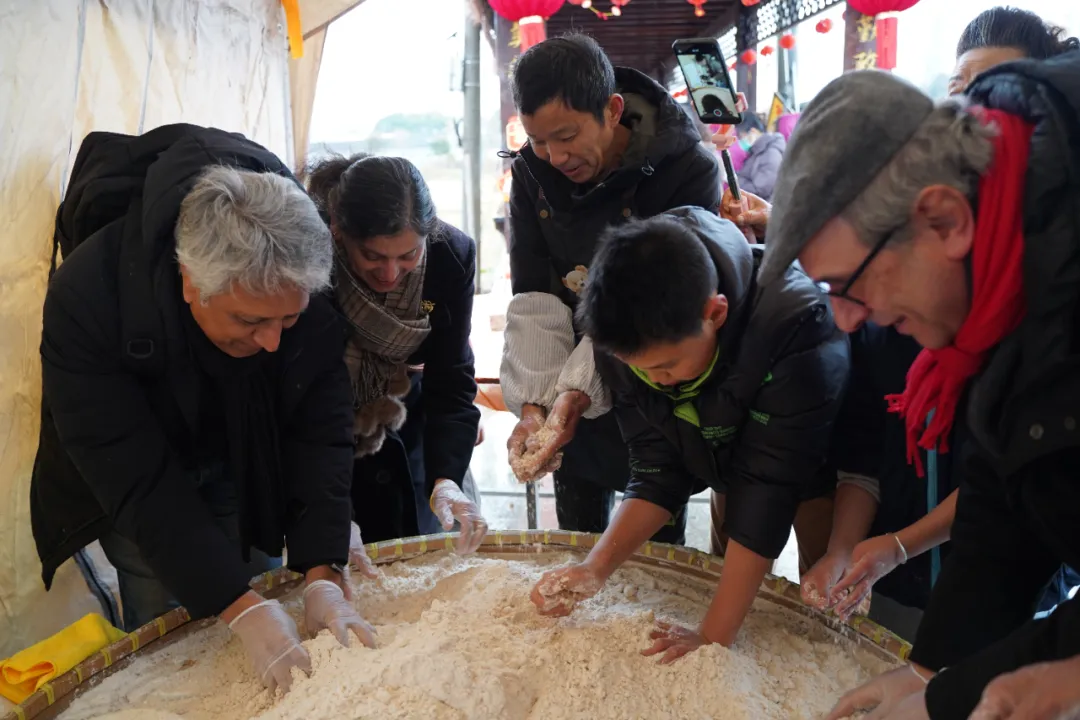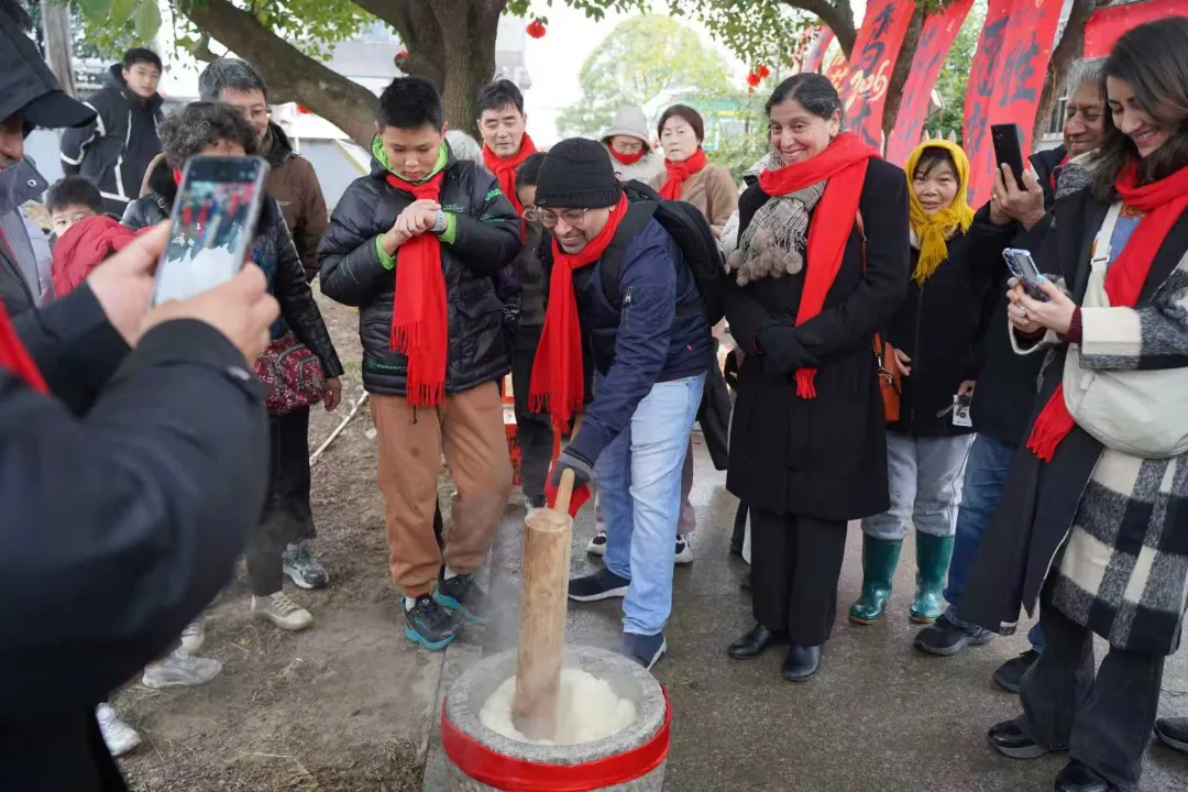 1月1日,新年来临之际,外籍人才之家举办迎新年体验服务,邀请在湖外籍人才参与体验别具韵味的湖州新年民俗服务。服务现场,外籍人才在观赏气势磅礴的舞龙表演后,亲手参与传统打年糕,体验稻米成糕的劳作喜悦与团圆寓意,也围桌共享了热气腾腾的年猪宴,在品尝地方风味中深入感知中国春节的人文内涵与喜庆氛围。通过这一系列丰富多彩的互动环节,外籍人才在欢声笑语中记住了这份温暖热闹的湖州年味。