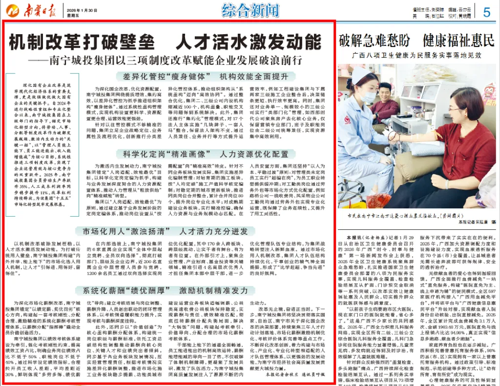 干部能上能下的通道全面畅通,员工能进能出的机制高效运转,薪酬能增能减的导向一目了然,不仅破解了体制机制障碍,更凝聚了发展共识、激发了队伍活力,为南宁城投集团高质量发展注入了源源不断的内生动力。
