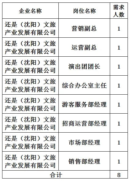 附件1:还是(沈阳)文旅产业发展有限公司岗位信息表.xlsx