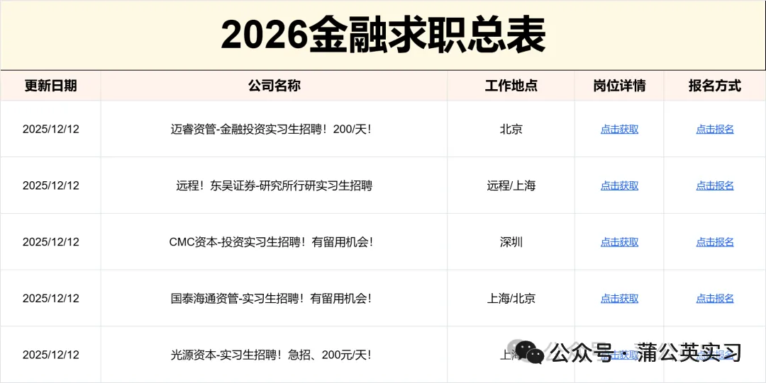 ☛ 2026券商投行实习信息(散招实习)