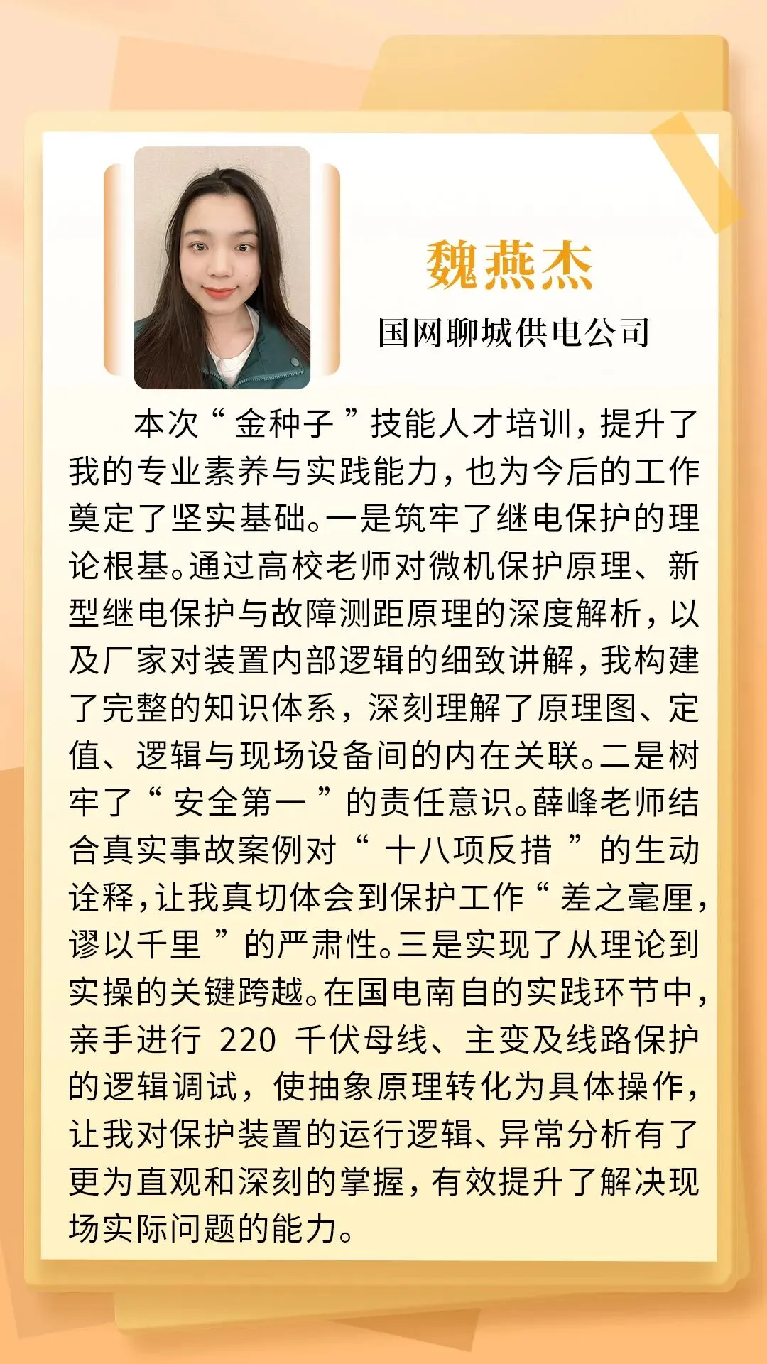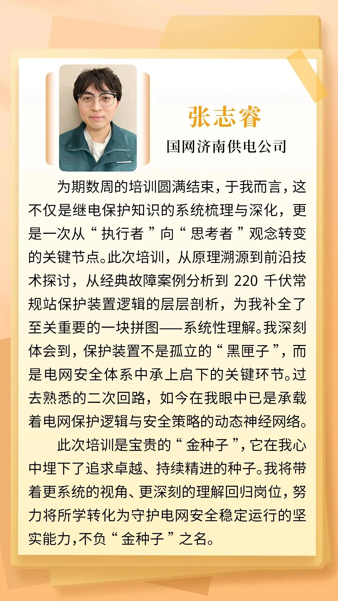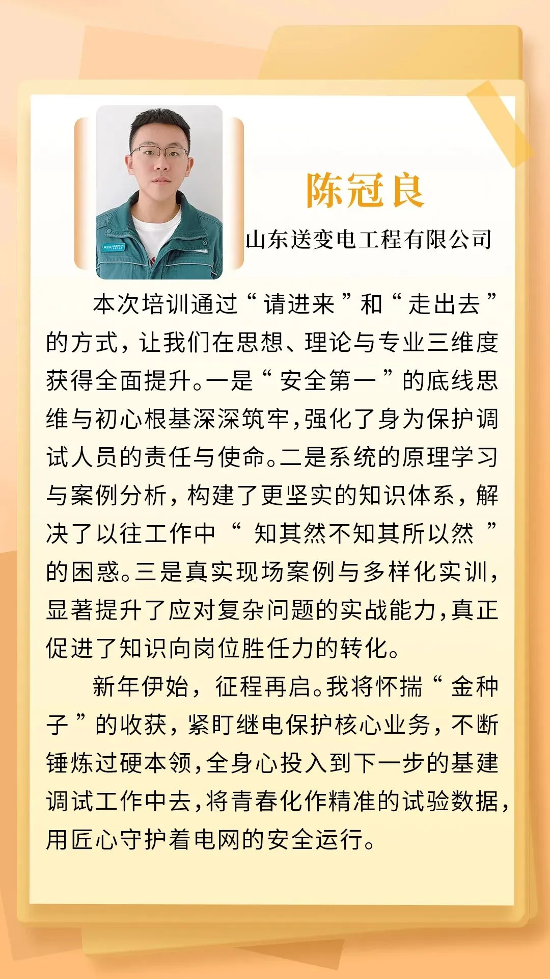 本次培训是公司在技能人才精准培养道路上的一次扎实探索,既提升了学员的专业技能,也强化了其思想认同与担当意识。展望未来,公司将持续完善“金种子”长效培育机制,搭建更广阔的实践平台与发展通道,引导青年骨干将所学所获转化为保障电网安全、推动专业进步的实际成效,期待大家在公司高质量发展新征程中走在前、挑大梁。