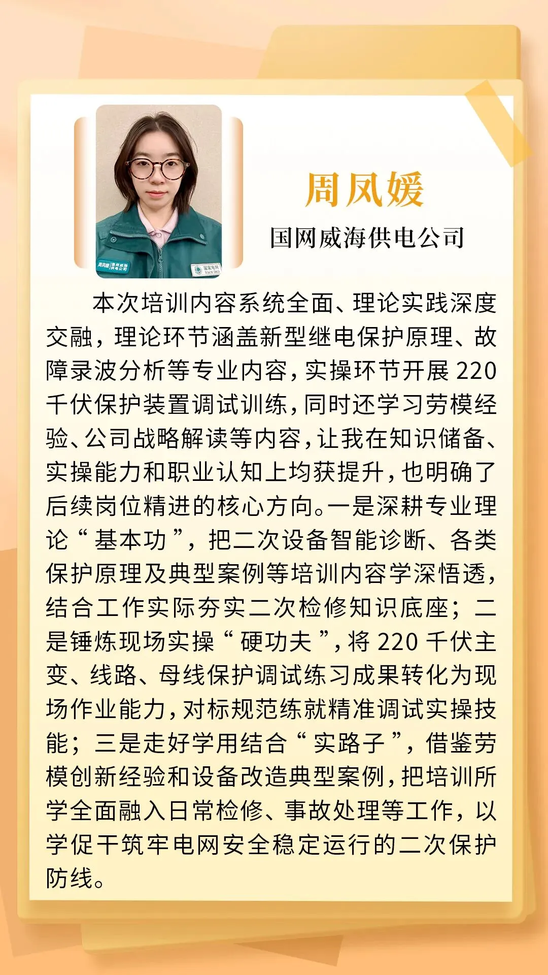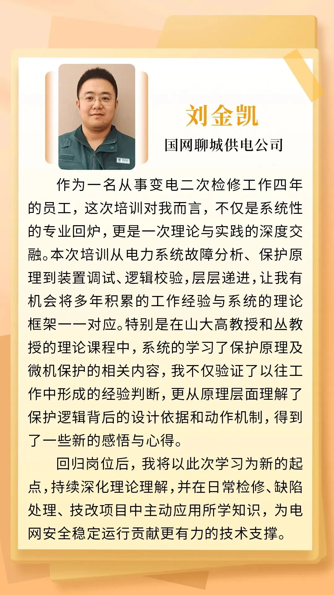 学员通过《微机型继电保护》《新型继电保护与故障测距原理》等核心课程的深入学习,不仅系统梳理和巩固了专业知识体系,更进一步理解了继电保护的内在逻辑与技术发展趋势,有效解决了工作中“知其然不知其所以然”的困惑,为分析与解决现场复杂问题奠定坚实理论基础。