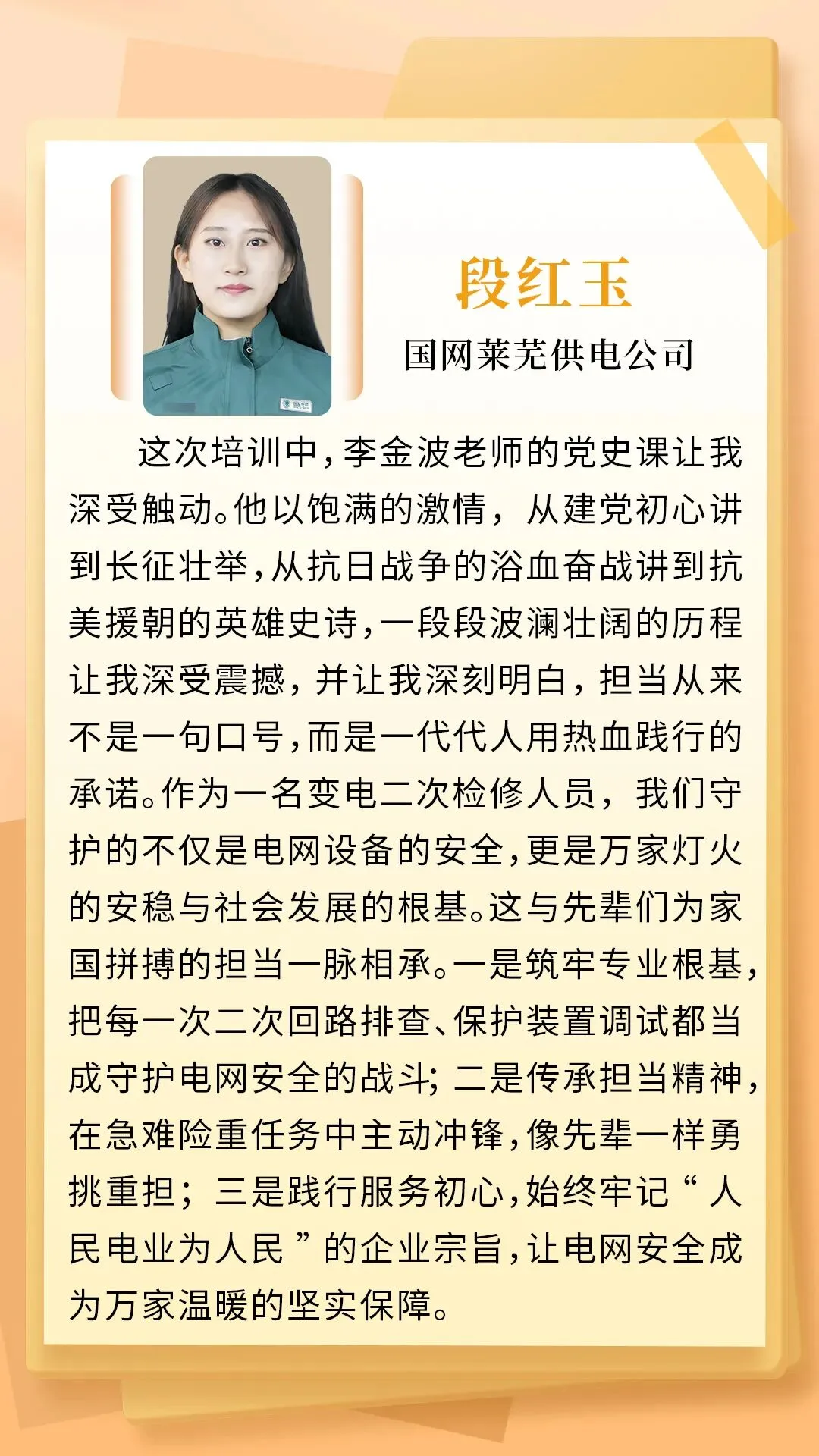 本次培训将技术传承与精神淬炼相结合,开设了《学习贯彻党的二十届四中全会精神》《从党的历史中学习领导力》《公司战略与新型电力系统解读》等课程,助力学员强化责任担当、提高协作能力、严守职业底线,实现专业技能与职业素养同步增强。