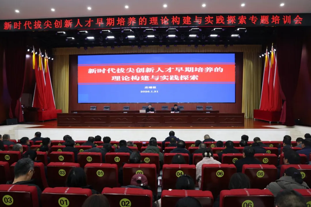 培训会上,庄增臣以《新时代拔尖创新人才早期培养的理论构建与实践探索》为题,围绕理论研究、系统分析与实践框架、早期贯通培养实践、课堂教学模式转变与实践、管理的困境与实践路径等五大板块展开系统分享。报告紧扣拔尖创新人才培养核心,既阐释了相关理论内涵与政策导向,又结合实践案例分享了培养体系构建、教学模式创新、各学段贯通衔接等方面的关键路径与实用方法,逻辑清晰、干货密集,兼具理论高度与实操价值,引发全体参会人员强烈共鸣。