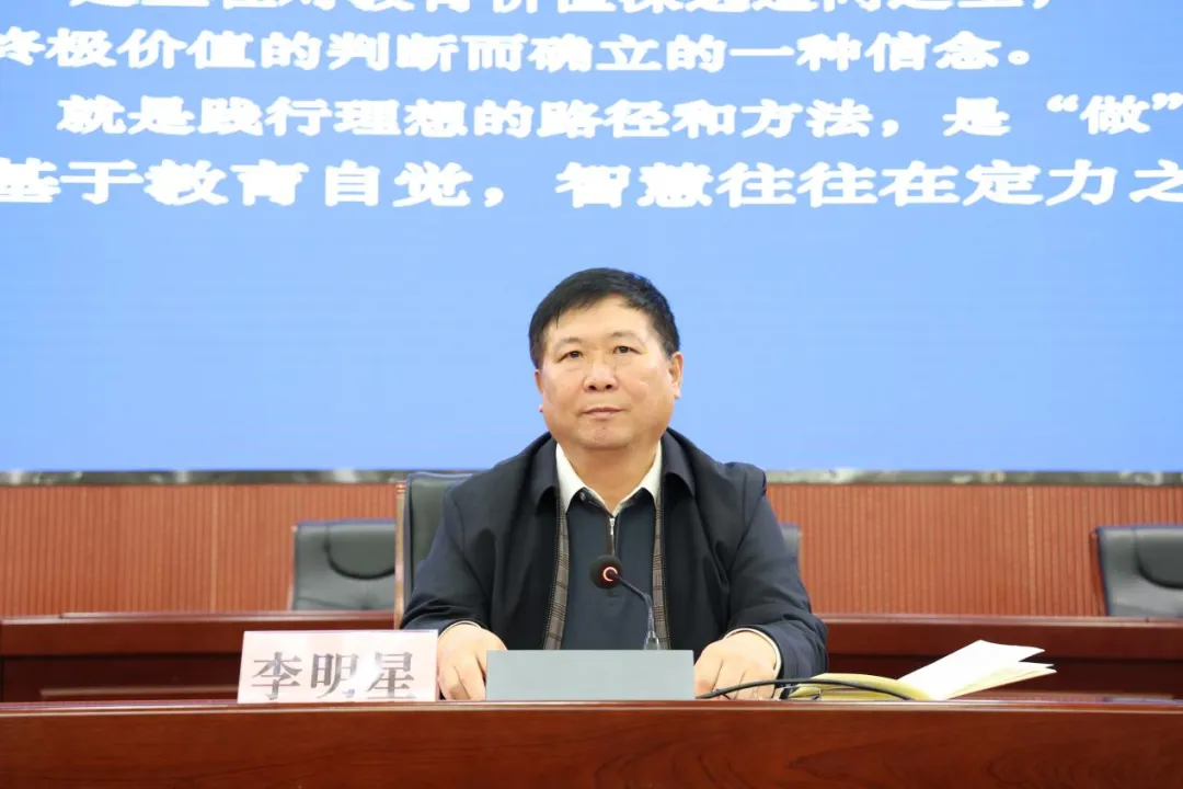 李明星在主持讲话时指出,当前东明基础教育正处于提质升级关键阶段,此次培训为县域拔尖创新人才培养与学校管理优化提供了宝贵经验。他要求全体参会人员,要精研管理之策,主动对标先进做法优化育人体系,将管理优势转化为人才培养的核心竞争力。要深耕教学之法,认真吸纳报告中的实践智慧,在日常课堂中融入创新思维引导、探究能力培养等环节,为尖优生定制个性化成长路径。要笃行落地之举,积极研究制定拔尖创新后备人才培养的具体实施方案,将报告中的理论研究与实践经验融入到学校课程设置、教师培训、评价体系等各环节,建立跟踪反馈机制,定期总结优化培养路径,全力推动拔尖创新后备人才培养工作落地见效,凝心聚力绘就东明教育高质量发展新图景。