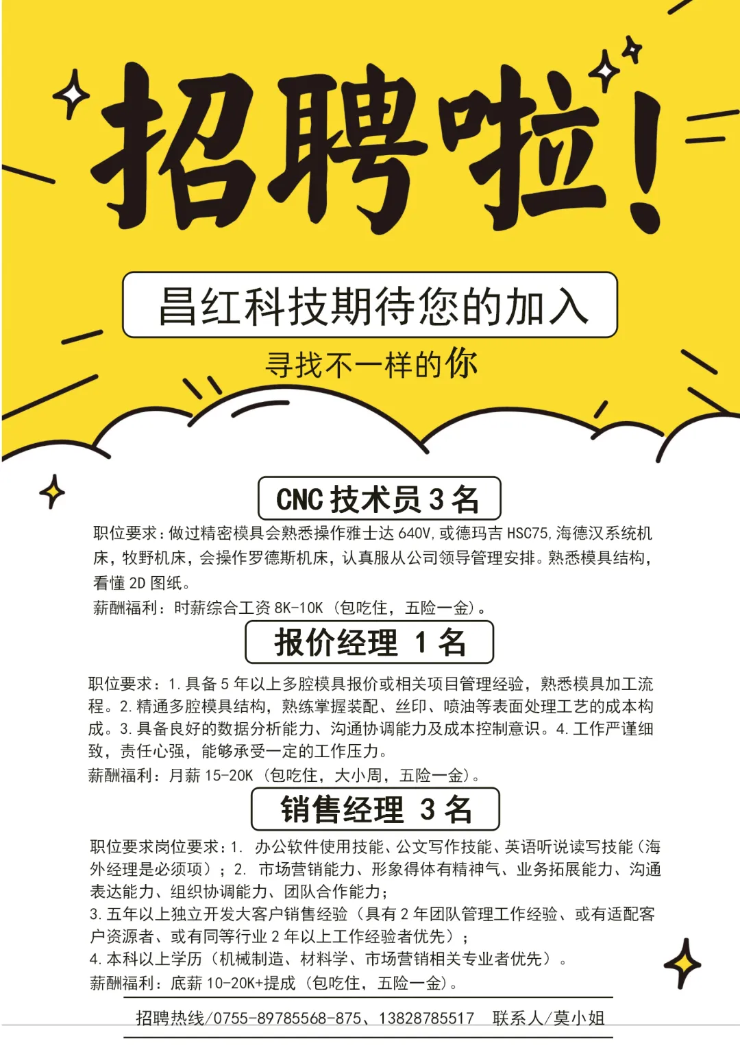 1、临时配五金员工1名(注,限女性,13元/小时,包吃,工作简单轻松,适合宝妈工作)
