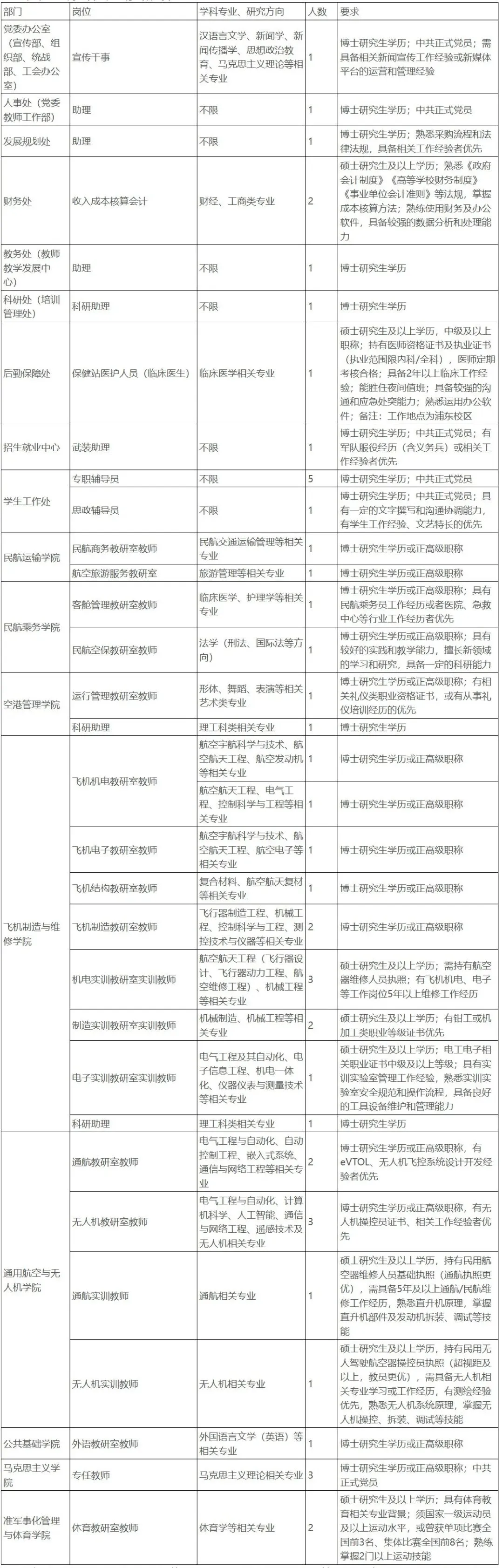 上海民航职业技术学院隶属于中国民用航空局,是一所面向行业,致力于培养服务民航和社会发展所需的一线高素质、高技能型人才的高职院校。根据国家、民航局事业单位公开招聘相关规定,结合我院人员需求实际情况,现开展2026年公开招聘工作,相关事项公告如下: