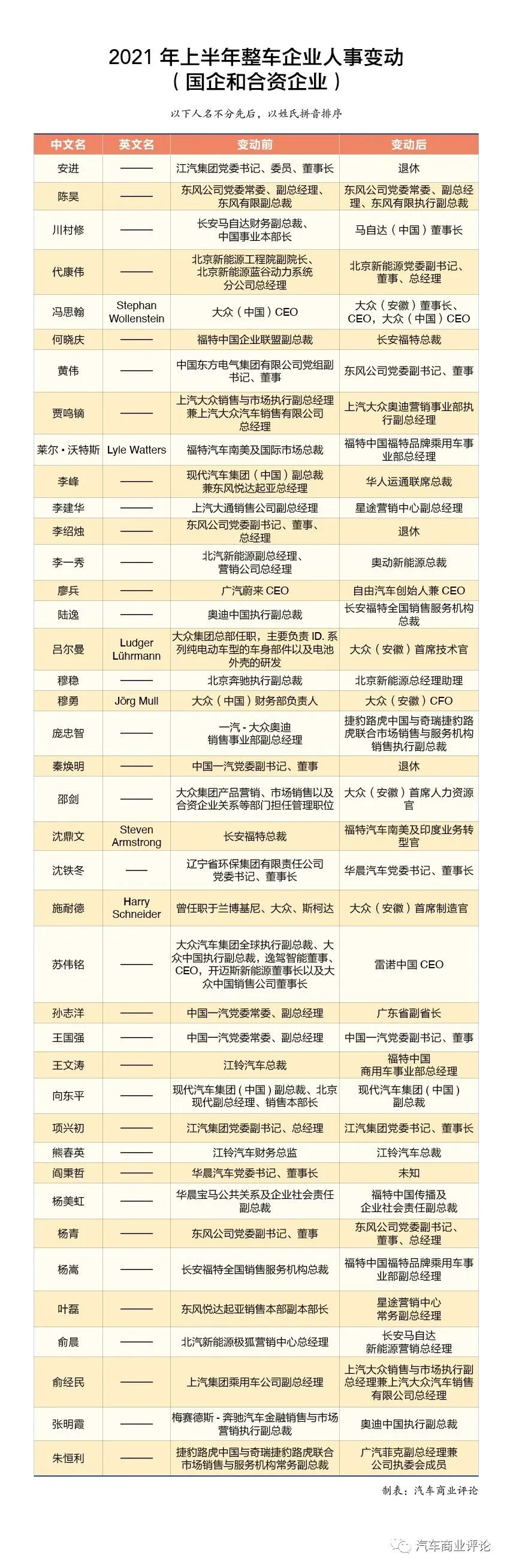来自汽车商业评论微信公众号,感觉很有意思,就转发在这里了,具体点击上面的链接阅读原文,我只摘取了两个人事变动列表在这里。