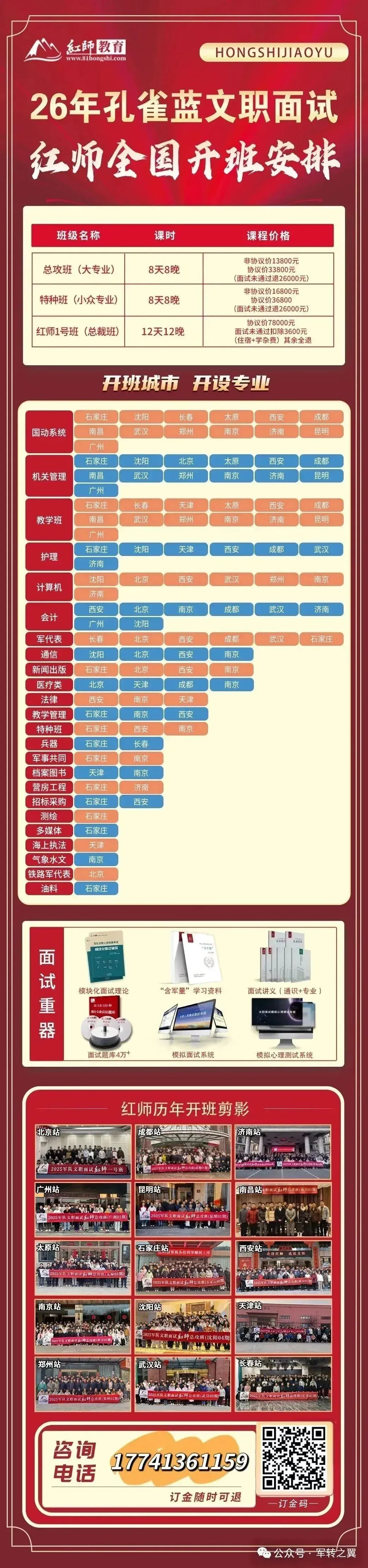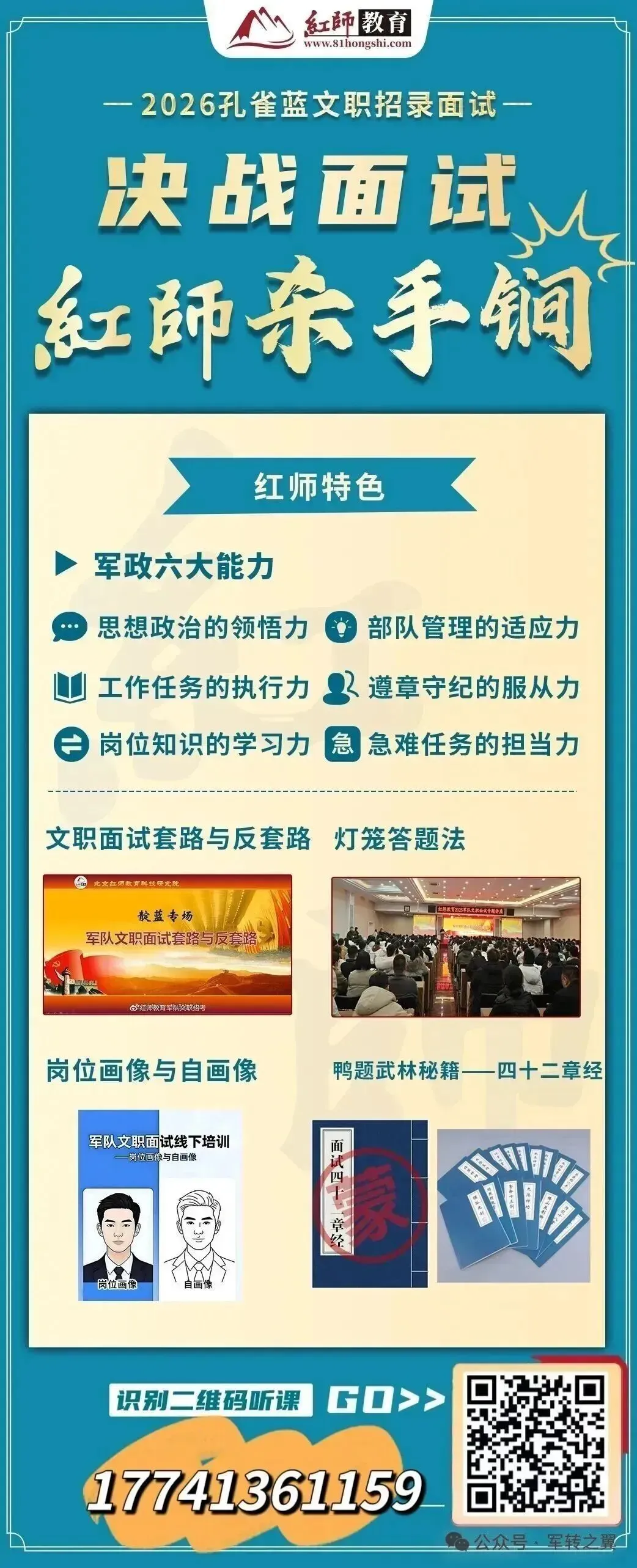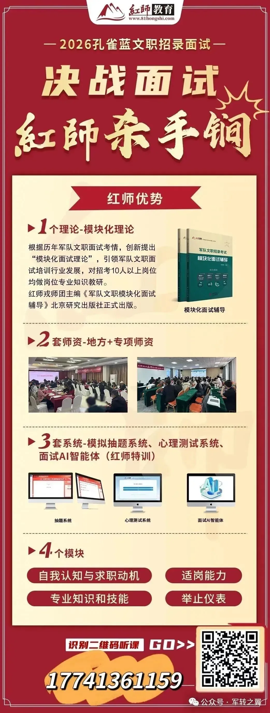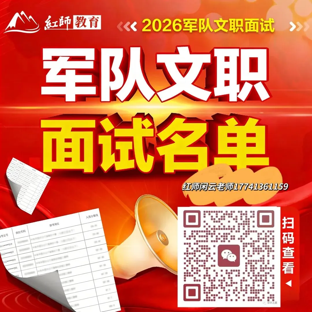 机会留给有准备的人!有关军队文职报考的任何问题,都可以添加红师闲云老师微信咨询!:17741361159(微信同)