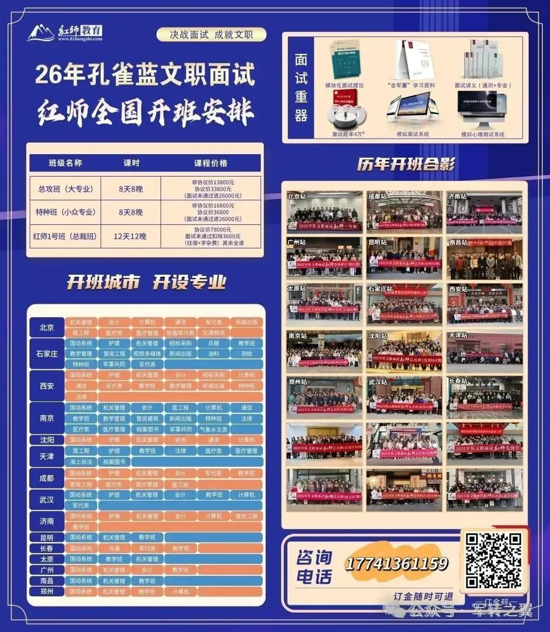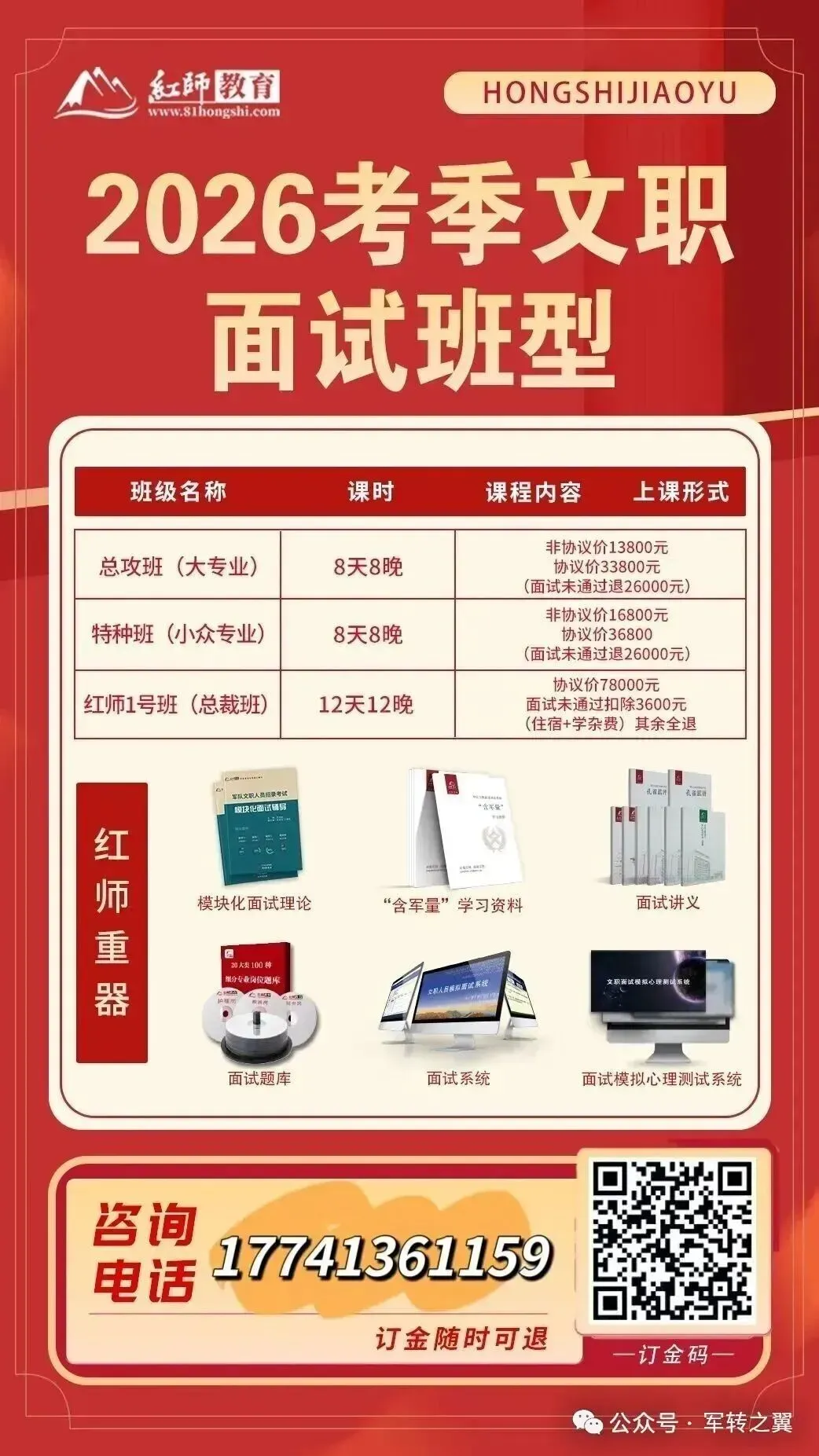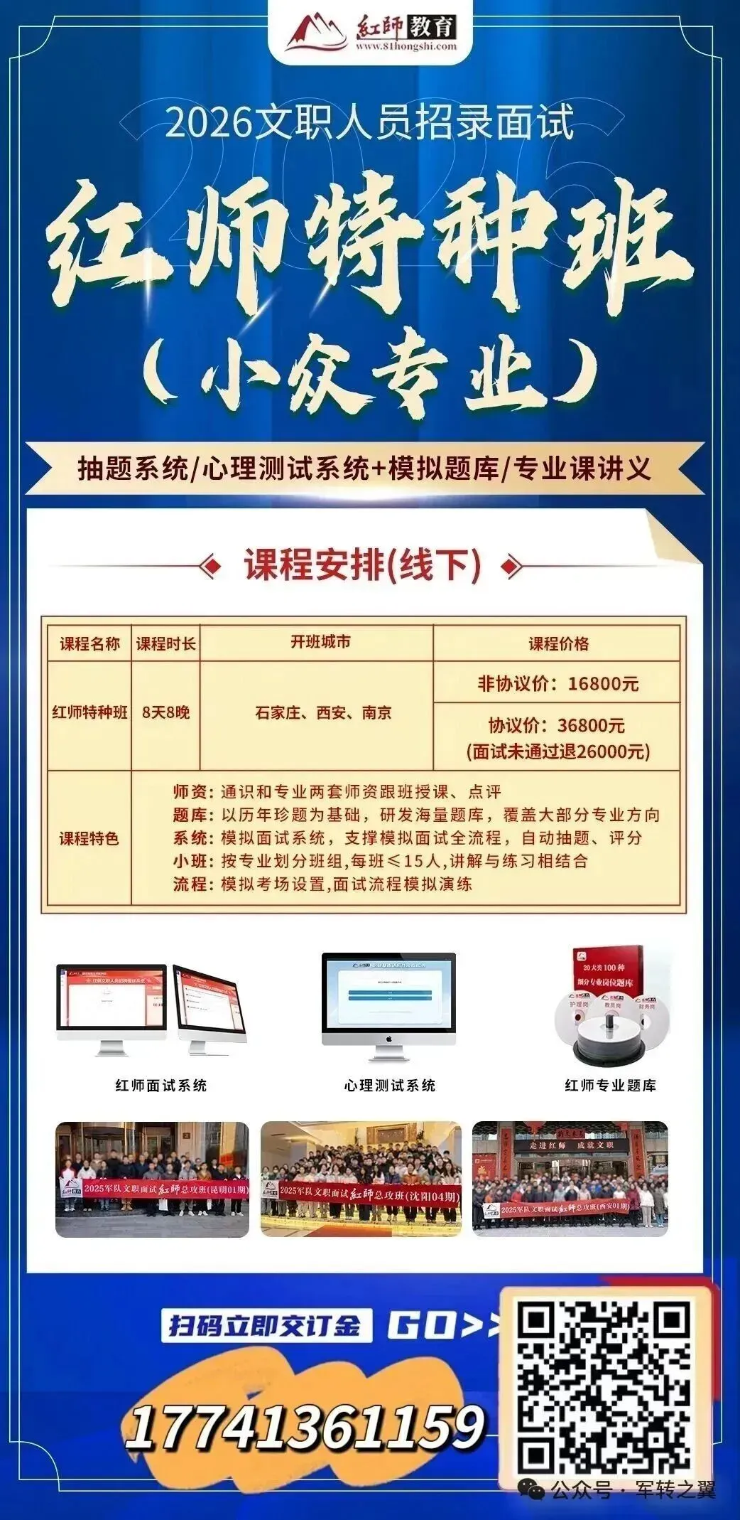 机会留给有准备的人!有关军队文职报考的任何问题,都可以添加红师闲云老师微信咨询!:17741361159(微信同)