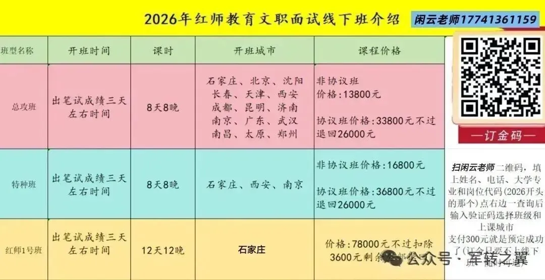 红师教育2026年面试班订金通道开启,,扫码交300订金占座