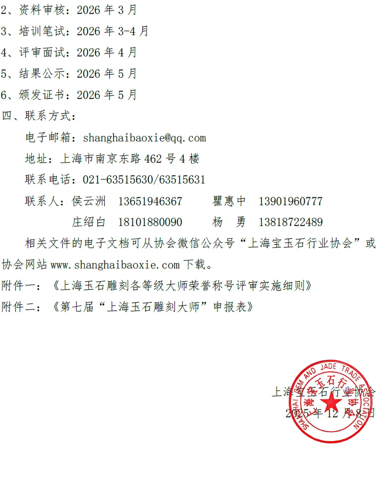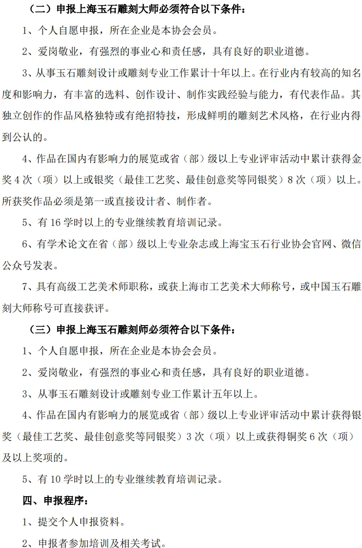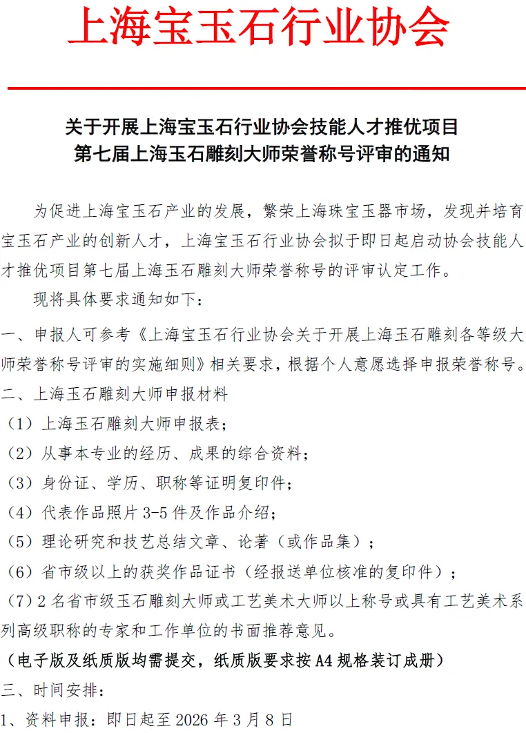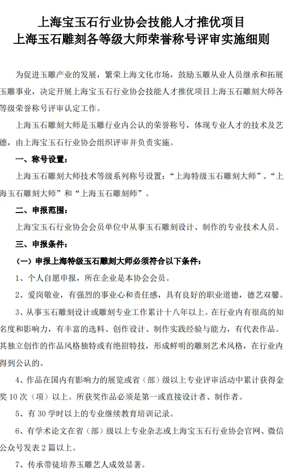 关于开展上海宝玉石行业协会技能人才推优项目第七届上海玉石雕刻大师荣誉称号评审的通知