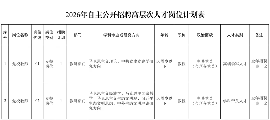 (1)《2026年自主公开招聘高层次人才报名表》(需本人手写签名);