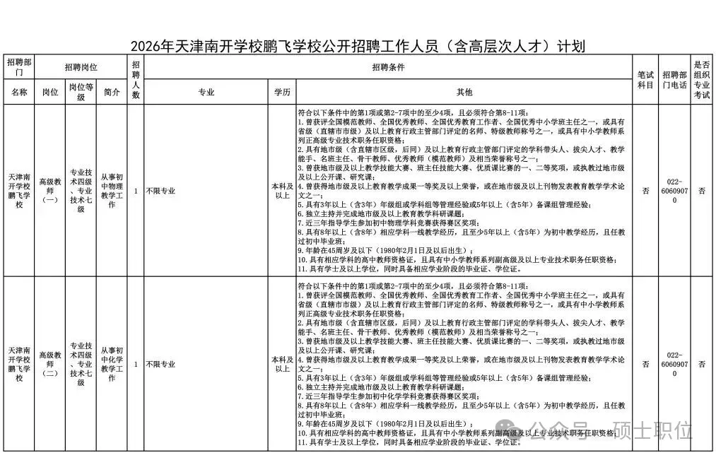 与百年南开同育人|天津南开学校鹏飞学校面向全国招聘8名高层次人才 | ![]() | |