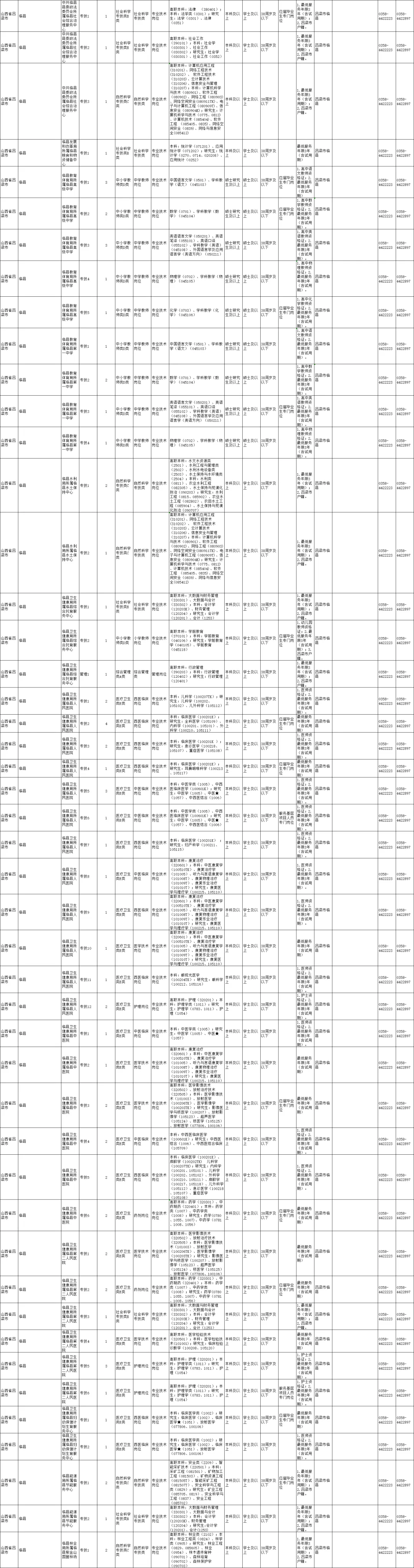 年全省事业单位公开招聘工作。临县招聘多人,