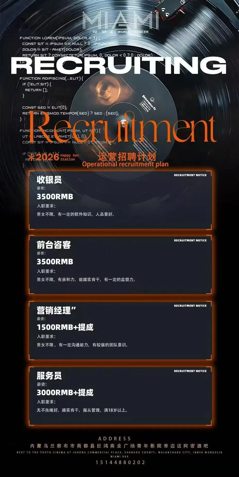 女DJ来一名 过年不回家 底薪压5结10 住宿单间