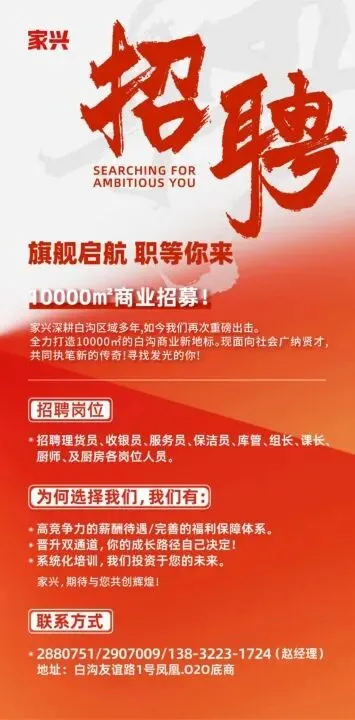 全力打造10000m2的白沟商业新地标。现面向社会广纳贤才, 共同执笔新的传奇!寻找发光的你!