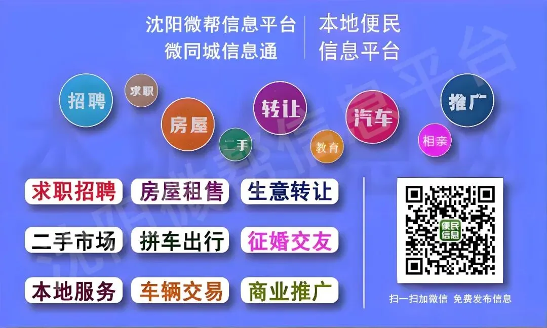 备注:联系时请说是在【沈阳微帮】看到的信息
