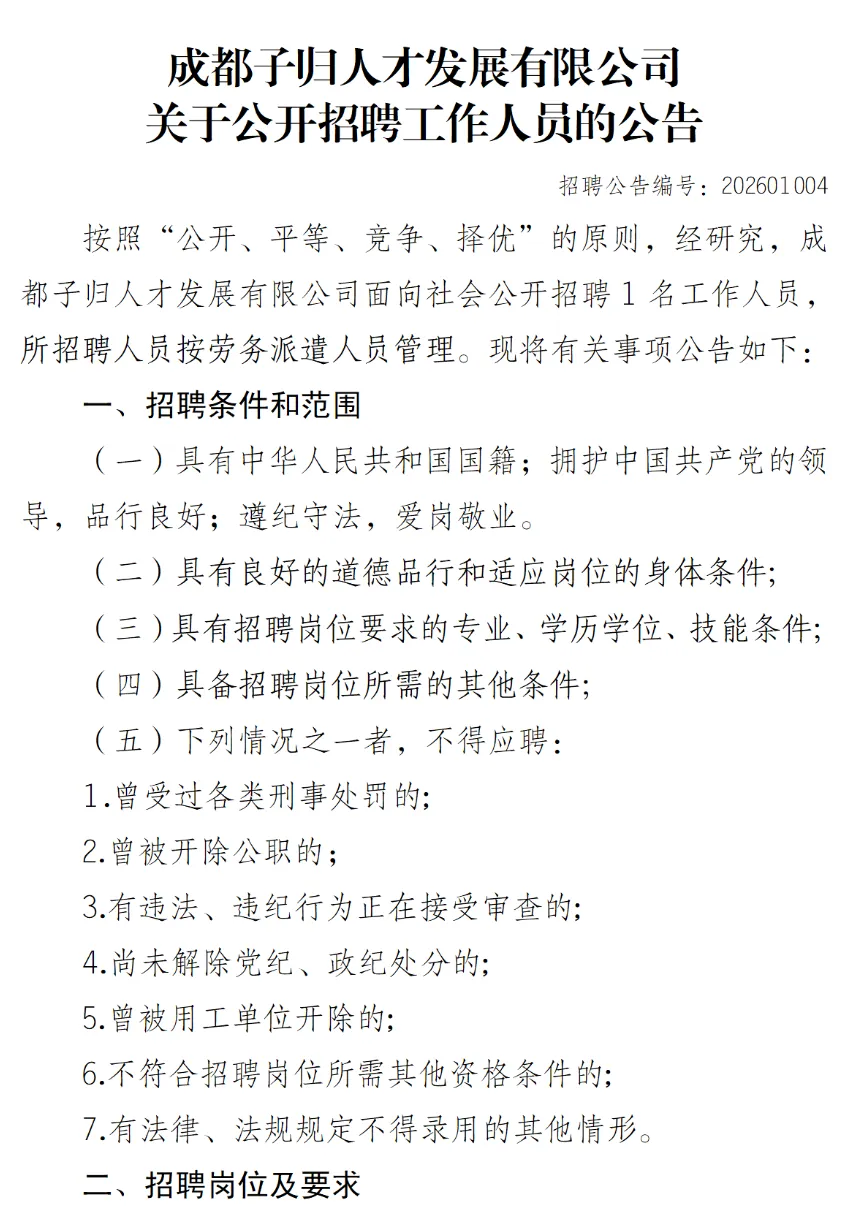 年薪60万元!成都交子金融控股集团有限公司所属成都交子期货有限公司招聘公告