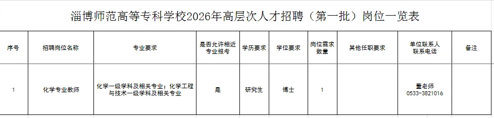 淄博师范高等专科学校2026年高层次人才招聘(第一批)(文末见岗位)
