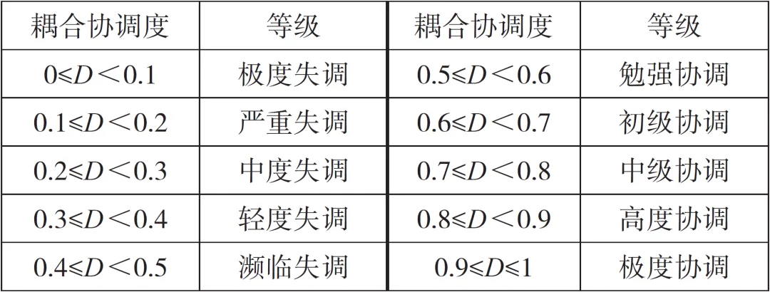 表4 耦合协调度等级划分标准