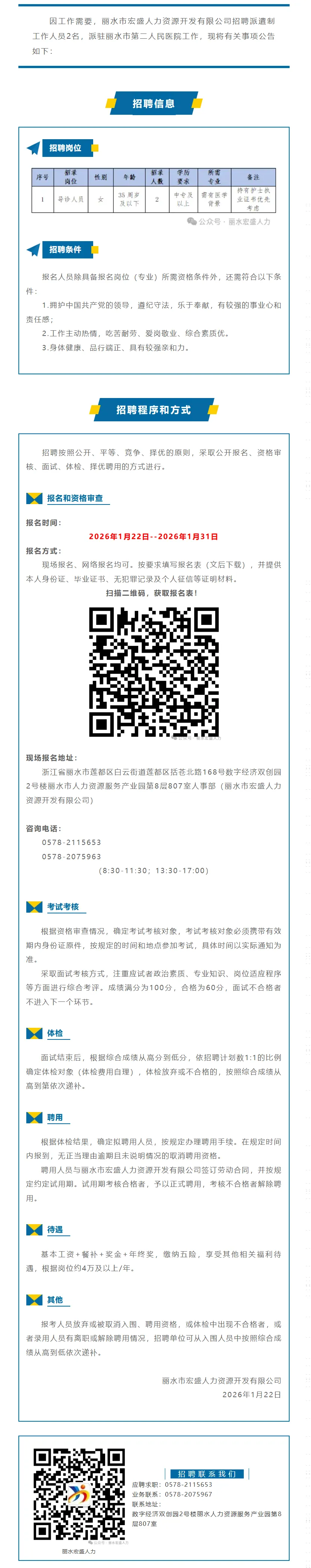 【浙江医护招聘】丽水市第二人民医院员工招聘公告