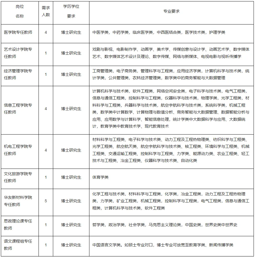 2.具备与招聘岗位要求相适应的学历学位、职称、专业、技能、工作经历等条件,具体要求见计划表。国(境)外学历专业和高校自设专业,经衢州职业技术学院认定为相关的,可接受报名应聘。