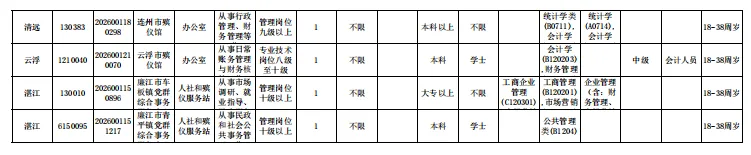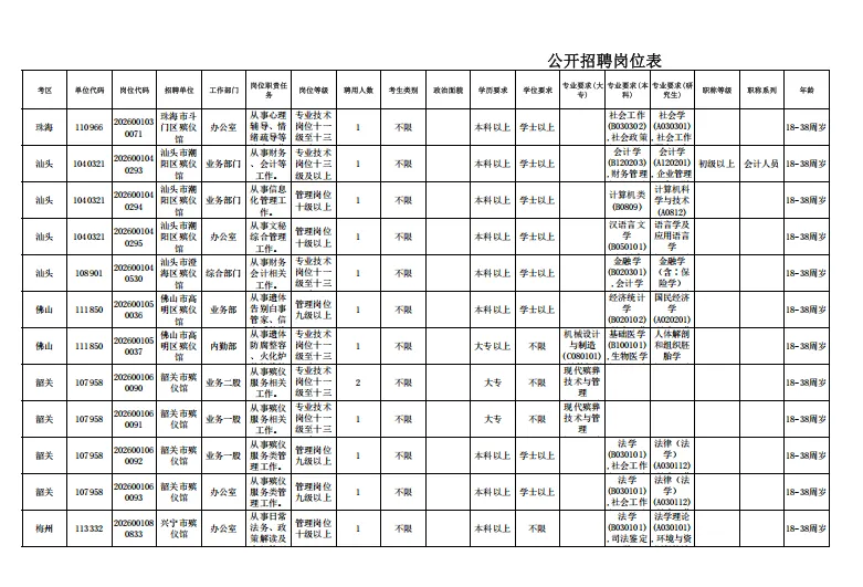为贯彻落实省委省政府“百万英才汇南粤”行动计划,吸引优秀高校毕业生及广大有志青年选择广东、建设广东,根据《中共中央组织部 人力资源社会保障部关于进一步做好事业单位公开招聘工作的通知》(人社部发〔2024〕57号)和《广东省事业单位公开招聘人员办法》(粤府令第301号)等有关规定,省委组织部、省人力资源社会保障厅决定集中开展2026年全省事业单位公开招聘高校毕业生工作。现就有关事项公告如下:
