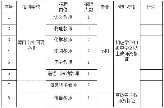 原标题:莆田市外国语学校(莆田第一中学妈祖城校区)2026年编外合同教师招聘方案