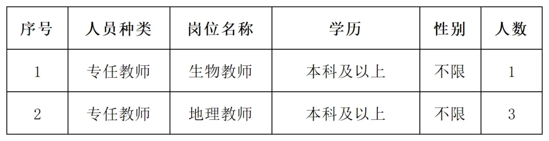 因学校实际用人需求,现招聘专任教师4名。其中,生物教师1名、地理教师3名。